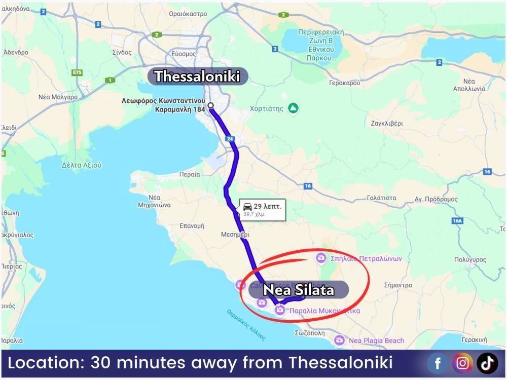 Location: It is located in Nea Silata, Halkidiki, in a quiet area, just 5 minutes from the beach and 30 minutes from Thessaloniki. Nea Kallikrateia and Sozopoli are only 10 minutes away. The village offers essential amenities such as a supermarket, school, café, and pharmacy, making it an ideal choice for both permanent living and a holiday home.
