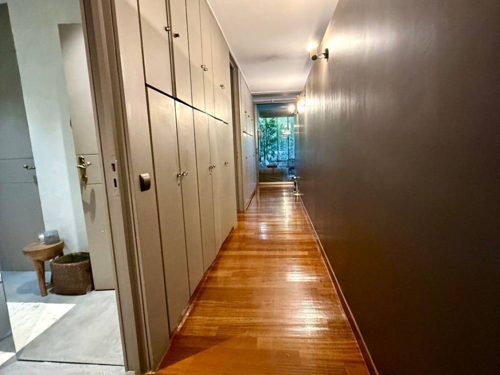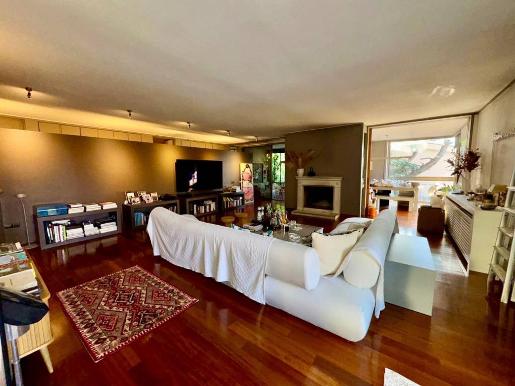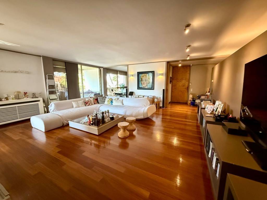 Exceptional 200 sq.m. apartment located on the 1st floor of a two-family house built in 1981 and fully renovated in 2020. The property stands out for its spacious, bright interiors and its privileged, quiet location surrounded by greenery. It consists of a very large living room with a fireplace, a separate dining area, a home office space, an independent kitchen, two bedrooms and two bathrooms. It features autonomous electric heating, large openings that allow plenty of natural light throughout the apartment, as well as a very large balcony, ideal for relaxation and entertaining.