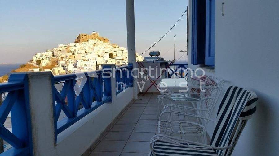 An exceptional 100 sq.m. apartment is offered for sale in a prime and highly sought-after location in Chora of Astypalaia, just 100 meters from the central square and the iconic Windmills. The property is situated on the first floor, is corner, dual-aspect and front-facing, offering unobstructed views of the sea and the Castle of Astypalaia. Originally built in 1982 and fully renovated in 2023, the apartment combines traditional island character with modern comfort standards. It features two spacious bedrooms with new aluminum frames, air conditioning and abundant natural light. The bathroom is comfortable and functional, while the kitchen is fully equipped with built-in appliances and high-quality cabinetry. The living room stands out with its large sea-facing window, fireplace and air conditioning, creating an ideal living space throughout the year. The property offers a perimeter terrace and balcony with panoramic views, as well as a private-use rooftop terrace with unobstructed sea and castle views. Additional features include autonomous oil heating, night electricity tariff, storage space and full furnishing. Easy car access from the rear road is a rare advantage for this location. On lower levels, there are additional residential and storage spaces with future investment potential. The property is fully legalized, with complete documentation, and is ready for immediate transfer. It represents an excellent choice for both private use and high-yield investment in one of the most upcoming Cycladic destinations.