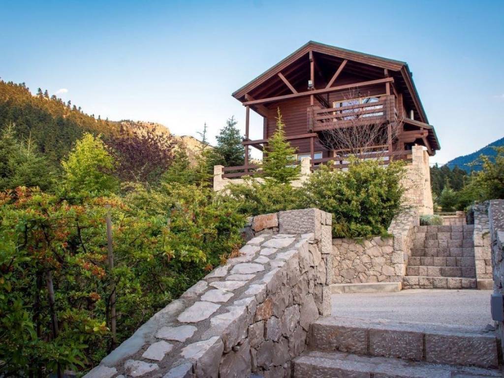 Ξύλινη κατοικία 160 τμ σε τρία επίπεδα , με 5 υπ ,4 μπάνια και άδεια οικοδομής για άλλα 10 ξύλινα σαλέ των 60 τμ ( επιδέχεται τροποποίηση αδείας ). Υπάρχει υποδομή για ελικοδρόμιο . Το μεγάλο σαλέ μπορεί να λειτουργήσει ως κεντρικό κτήριο του συνόλου . Η τοποθεσία είναι μοναδική μέσα στο ελατόδασος του Παρνασσού !!