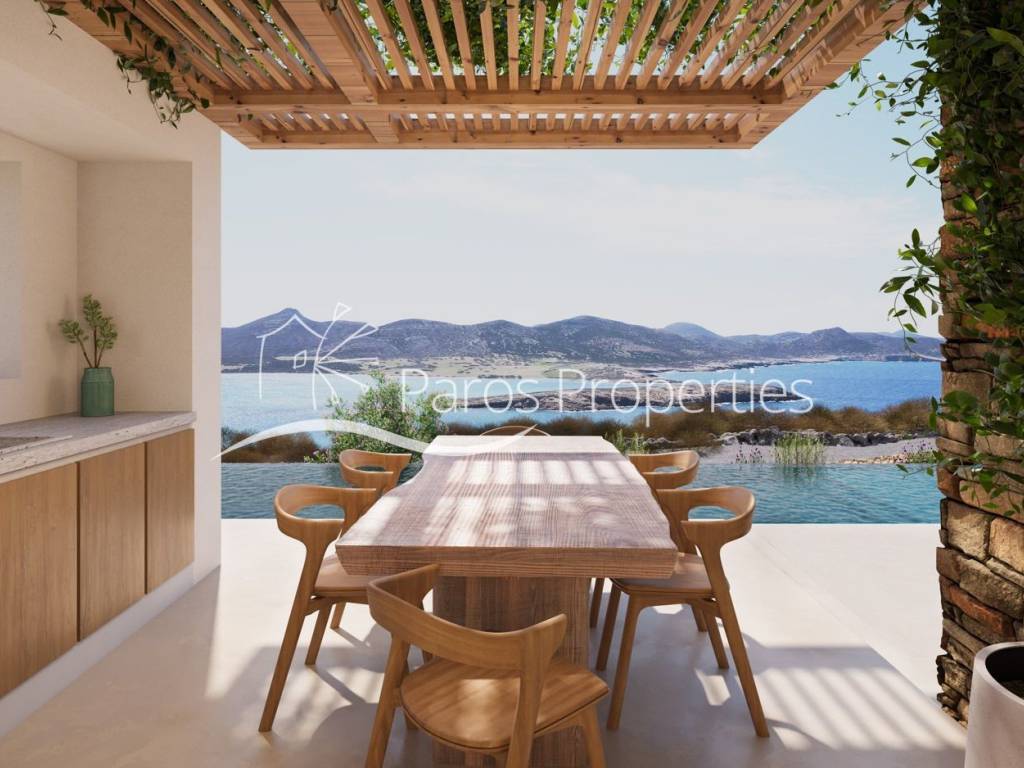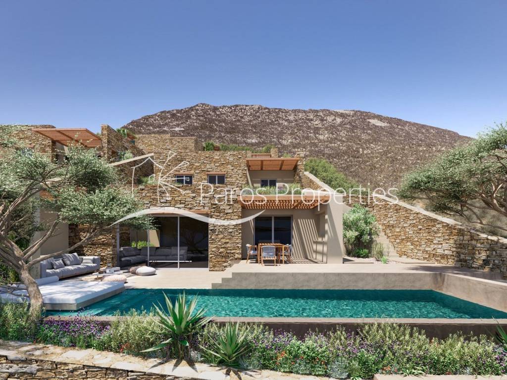 Villa Selene an Exclusive Sea-View Villa Under Development | Agios Georgios, Antiparos Located within a prestigious boutique enclave of only four luxury residences, this fully autonomous and detached villa occupies an elevated and highly desirable setting in Agios Georgios, Antiparos, commanding breathtaking, unobstructed views over Despotiko Island and the Aegean Sea. Conceived with a focus on refined modern living and Cycladic simplicity, Villa Selene a 229 m² residence is arranged across spacious interiors and beautifully proportioned outdoor areas. Expansive openings connect the main living spaces to wide terraces, encouraging a seamless flow between indoor comfort and outdoor living, enhanced by pergola-covered areas and sweeping sea panoramas. The private quarters are elegantly configured, featuring a generous master bedroom suite complete with a walk-in closet and a stylish en-suite bathroom enjoying open sea views. Two further en-suite bedrooms offer privacy and comfort, ideal for hosting family or guests in a relaxed yet sophisticated environment. At the lower level, a series of thoughtfully planned auxiliary spaces provide outstanding versatility, including a multi-purpose suite suitable for use as a lounge area, private fitness room, or staff accommodation. The outdoor spaces are anchored by an impressive private infinity swimming pool, designed with an overflow edge and complemented by a distinctive sun-lounger island, creating an idyllic setting for all-day relaxation or sunset gatherings overlooking the sea. Currently under construction, this villa presents an exceptional opportunity to secure a contemporary luxury home in one of Antiparos’ most coveted locations, offering privacy, architectural quality, and spectacular sea views within a low-density, high-end residential development.