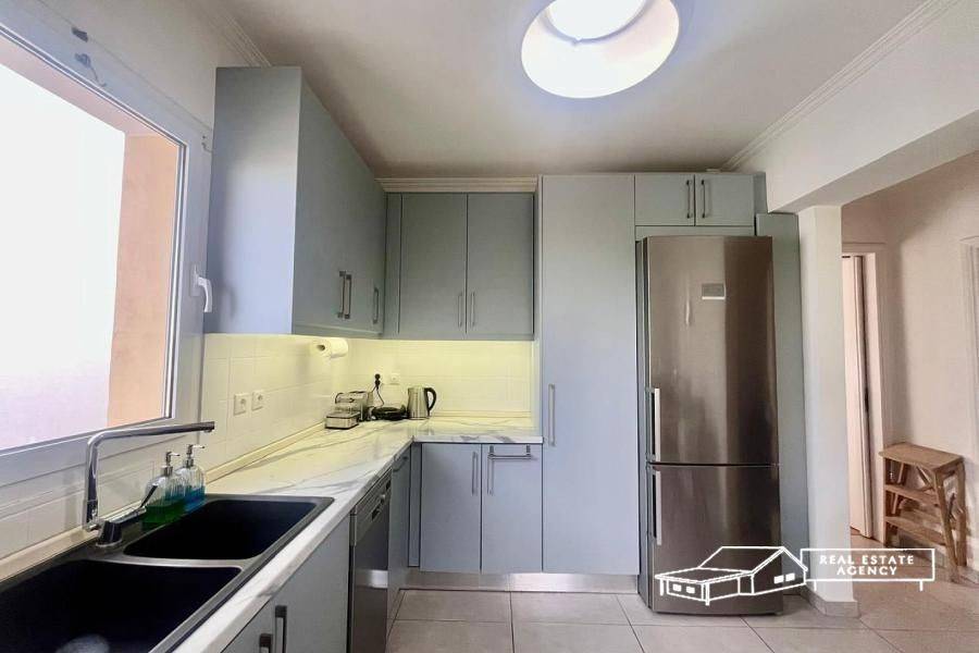 Varkiza, for sale a luxuriously renovated (2020) corner apartment of 137 sq.m., on the 3rd floor with light that embraces every corner. The large, bright living room with an energy fireplace invites you to relax, while the kitchen with built-in appliances becomes the meeting point for family moments. With 3 bedrooms and 2 bathrooms, oak floors, verandas with views, underground parking and storage room, this house combines comfort, security and functionality. In just 8 minutes walk you are at the market, the center and of course the sea. Ideal for those who want to wake up with light, enjoy moments of tranquility and live every day like a vacation. A house that embraces your everyday life with warmth and style. The location on the map is indicative. Contact phone: +30 6944 772536, website: www.merryland.com.gr, Email: sotiropoulou@merryland.com.gr, Id: 16447