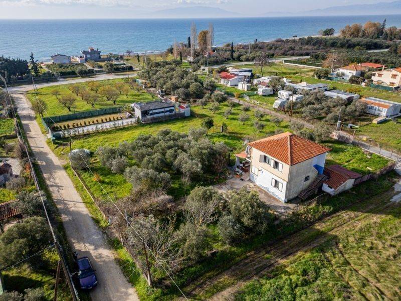 Two-story detached house with a total area of 105 sq.m. on a parcel of 1,004 sq.m. in Orfani Beach, Kavala. Each floor is an independent residence and includes an open-plan living room-kitchen, two bedrooms, and a bathroom. The ground floor has a stove, while the upper floor has been recently renovated and has air conditioning. In addition, there is a solar water heater, old-style aluminum window frames, and two comfortable terraces with unobstructed view for moments of complete relaxation. The surrounding area includes a storage room and parking space, while olive trees complement the beautiful green garden. It is southwest oriented and located only 250 meters away from the sea. The famous center of Ofrinio Beach is 2 kilometers away and offers a variety of entertainment options for every visitor. Year of construction: 1993