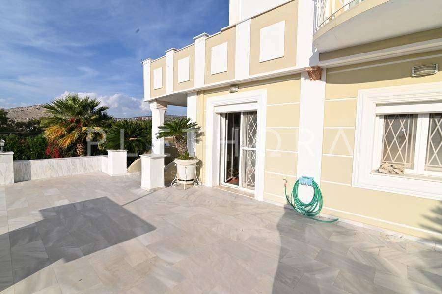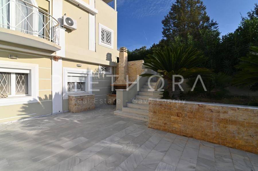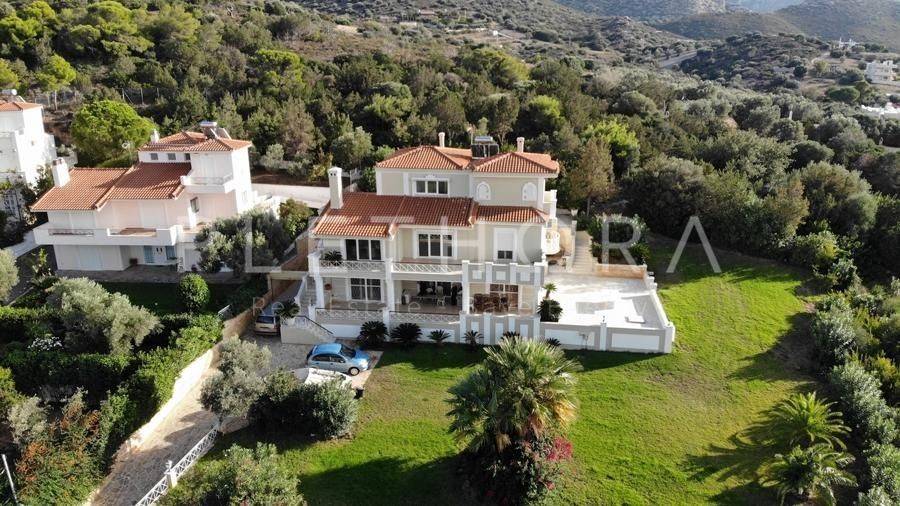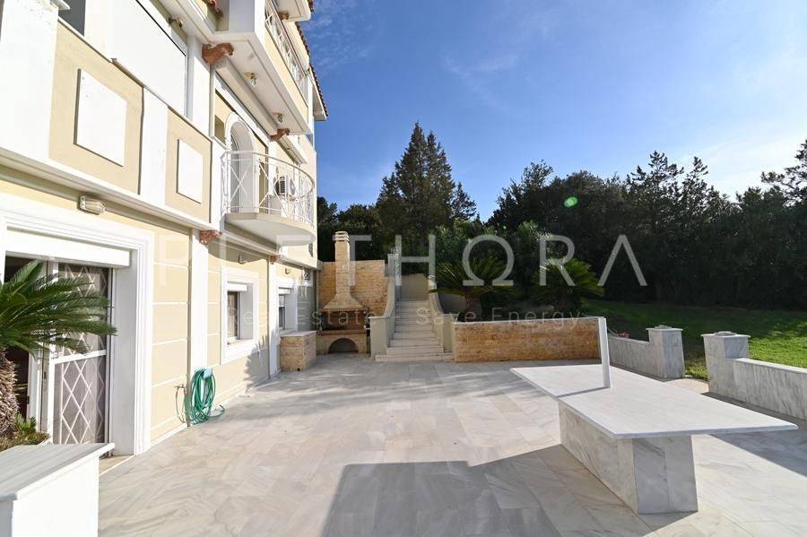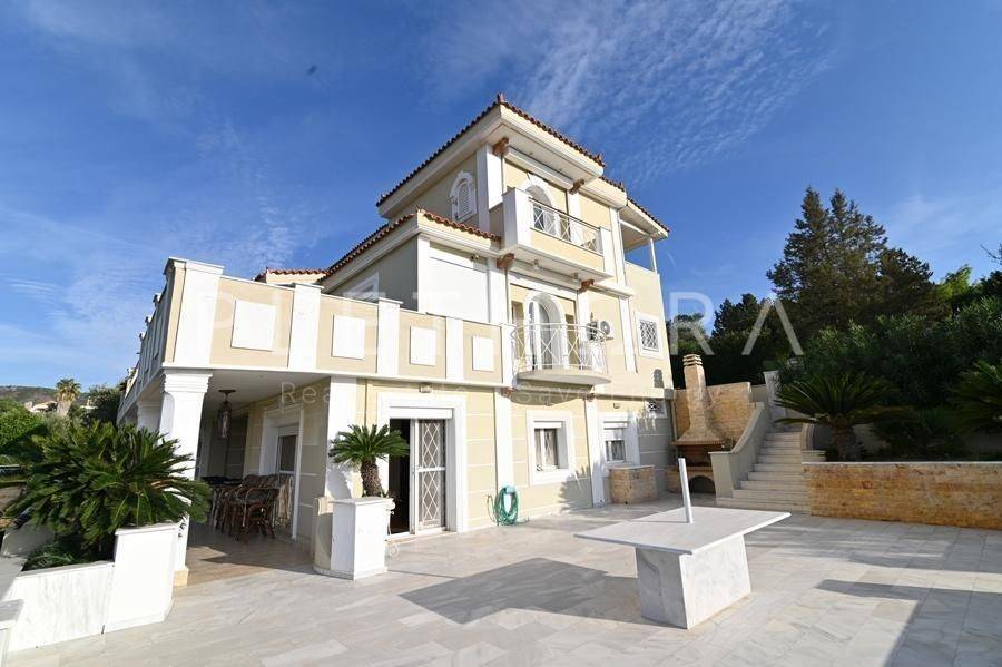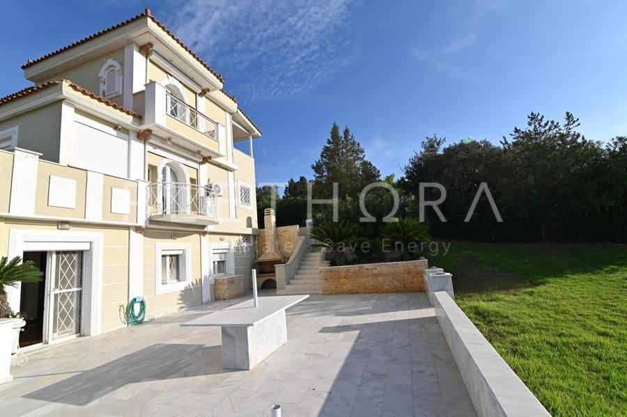 Palea Fokea, Thymari - Detached House 485sqm plot 1500sqm, partially furnished, bedrooms 6, levels 4, semi-basement - ground floor - 1st - 2nd, excellent condition, year built 2007, energy class C, 4 living rooms, 3 kitchens, 3 bathrooms, 2 wc, heating type: autonomous (oil), air condition, parking open space, quiet, dual aspect apartment, luminous, corner, panoramic view, frontage, drop ceiling, storage space, solar heater, boiler, external thermal insulation, fireplace, balconies, large balconies, elevator, garden, private terrace, built in appliances, aluminum frames, double glazed windows, door screen, marble floors, separate kitchen, office, three phase electricity, night electricity discount rate, secure door, alarm, video doorbell, safety box, luxurious, internal staircase, barbeque, playroom, cloakroom, gym, service room, satellite, internal elevator, laundry room, cellar, pets allowed, residential zone, south-eastern orientation, access from asphalt, investment property, close to sea (up to 1000m), close to market (up to 1500m), close to entertainment (up to 1500m).