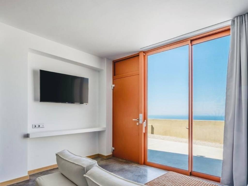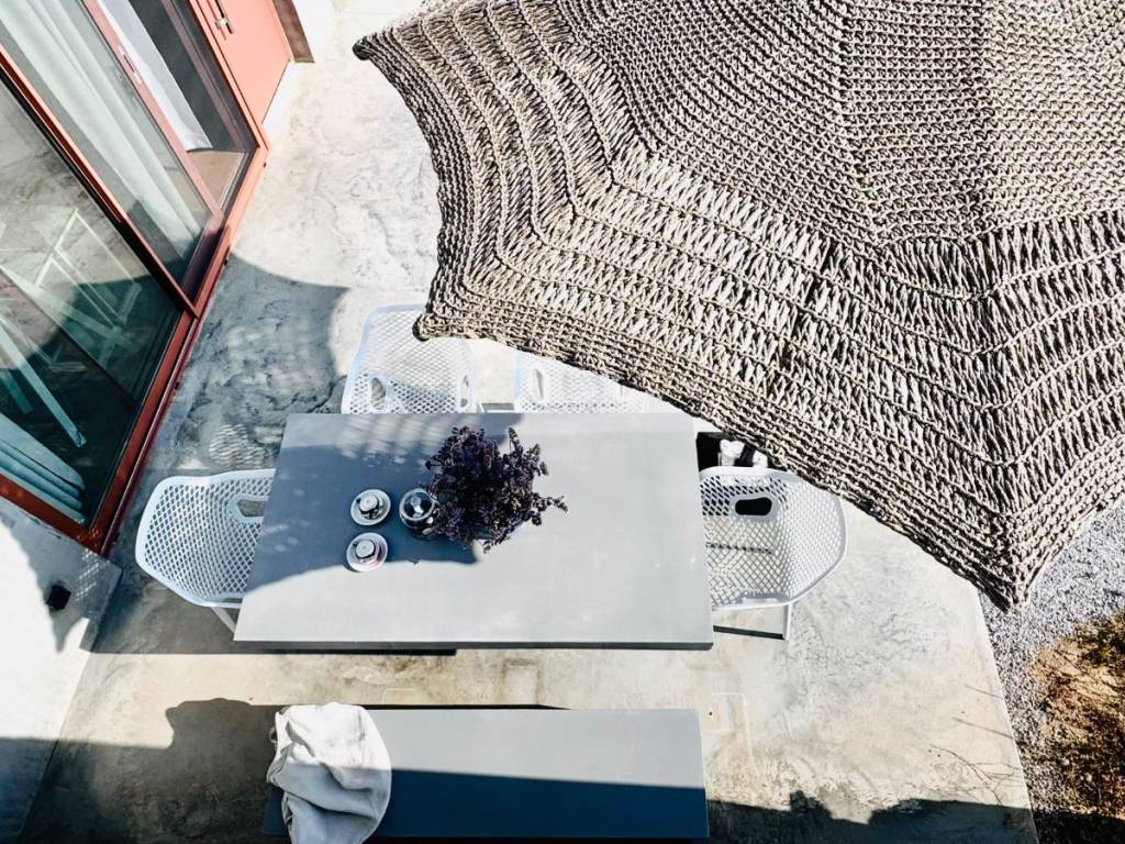 Unique earth house for sale: My Hidden Iposkafo upper level villa with lounge pool, in Karystos, 370 m from the sea and a mere 2 mins drive from Agia Paraskevi beach. *NOTE: This is a private sale ad generated by the owner. Full or partial reproduction of its contents and photos is prohibited by law*. Eco-friendly My Hidden Iposkafo upper level villa, embraces the earth’s contours and measures 73 sq. meters offering 3 bedrooms, 2 full bathrooms, 1 full kitchen with dining area, a living room and a storage space. The exterior yards and verandas boast spectacular, unobstructed sea views and unforgettable sunsets, plus, a 7 sq. meter lounge pool. The upper level villa provides a cool back yard and a ramp for car access and parking without having to use stairs. The iposkafa (earth homes) were constructed in 2025 in a plot which is located in OSMAES area within Karystos town planning (εντός σχεδίου πόλεως Καρύστου) on Evia island. The plot measures 678 sq. meters. The property is available for viewing all year round with appointment. The price is NON-NEGOTIABLE. * ALSO NOTE that owners do not cooperate with estate agents, unless, contact is made on behalf of agent clients - for which owners do not offer commission * This ad pertains to the sale of: - the 73 sq. meter earth home villa - ownership of percentage of the 678 sq. meters plot (σύσταση κάθετης ιδιοκτησίας) - shared use of additional areas within the plot - up to 35 sq. meters building allowance (υπόλοιπο δόμησης) - selection of furniture and electric appliances PROPERTY DESCRIPTION: My Hidden Iposkafo complex is crafted from concrete, glass, steel and pressed cement presenting brand new, design villas in paradise Agia Paraskevi peninsula (Cape Paximada) only 7 km from Karystos town. Nestled in a steep cliffside, the complex seamlessly integrates with the natural landscape and offers versatile viewpoints of the Aegean Sea, the Cycladic nature and Karystian rock, thus, offering ample ways to reconnect with nature. My Hidden Iposkafo’s sustainability features, organic aesthetics and lush rooftop greenery all enhance its eco-consciousness. Heating and cooling of the villa is achieved via geothermal energy and enhanced via autonomous airconditioning units throughout. My Hidden Iposkafo oozes class and finesse at every point of orientation. Find inspiration from the unique architecture. The floor to ceiling triple-glazed windows by Alumil, allow the breathtaking sea vistas to stream into the interiors as a continuation to the horizon and the beautiful nature that surrounds it. Monochromatic white interiors are contrasted by pops of colour in natural materials and luxury accessories. LOCATION Discover paradise in the most beautiful corner of southern Evia driving 10 mins from the charming coastal town of Karystos, a mere 1,5 hours trip from central Athens and even closer from Athens International Airport. Arriving at Agia Paraskevi cycladic peninsula will make you feel that you've left the world behind - Amazing turquoise sea views and unforgettable sunsets towards the Cyclades (Petalioi islands, Kea, Kythnos and Andros islands) and the magical blue Aegean Sea. OSMAES area stretches along the peninsula of Paximada - Agia Paraskevi and constitutes a perfectly organized area with a great road system, public lights as well as water and sewage networks. ACCESS FROM ATHENS My Hidden Iposkafo in Karystos are easy to reach from Athens in two ways. Either by ferry or driving via Chalkida. In further detail: -Reaching the property FROM ATHENS or ATHENS AIRPORT THROUGH RAFINA PORT: From the port of Rafina, which is very close to Athens Airport, take the ferry crossing to Marmari (1hour duration). Then drive along the coastal road following the signs to Karystos town which is only a 10-minute drive - simply 12 km and an additional 7 km from there to reach the virgin peninsula of Agia Paraskevi and My Hidden Iposkafo. -Reaching the property FROM ATHENS or ATHENS AIRPORT THROUGH AGIA MARINA PORT: Alternatively, you can also cross to Evia island by ferry via the port of Agia Marina and reach Nea Styra. The crossing is shorter (40 minutes duration) and then you take the route from Nea Styra via Kapsala village in order to arrive to Karystos town. The whole drive from Nea Styra port to Karystos town will take you 35 minutes - 33 km and an additional 7 km from there to reach the virgin peninsula of Agia Paraskevi and My Hidden Iposkafo. DRIVING FROM GREECE MAINLAND OVER THE BRIDGE OF CHALKIDA: An interesting drive that does not involve a ferry crossing. Simply drive from any location on mainland Greece -with the aid of your gps- to get to the bridge of Chalkida that will bring you to central Evia island. From there, you will have to take the route towards southern Evia by passing through the towns of Eretria, Aliveri and Nea Styra to finally reach Karystos town and Agia Paraskevi peninsula where My Hidden Iposkafo is located.