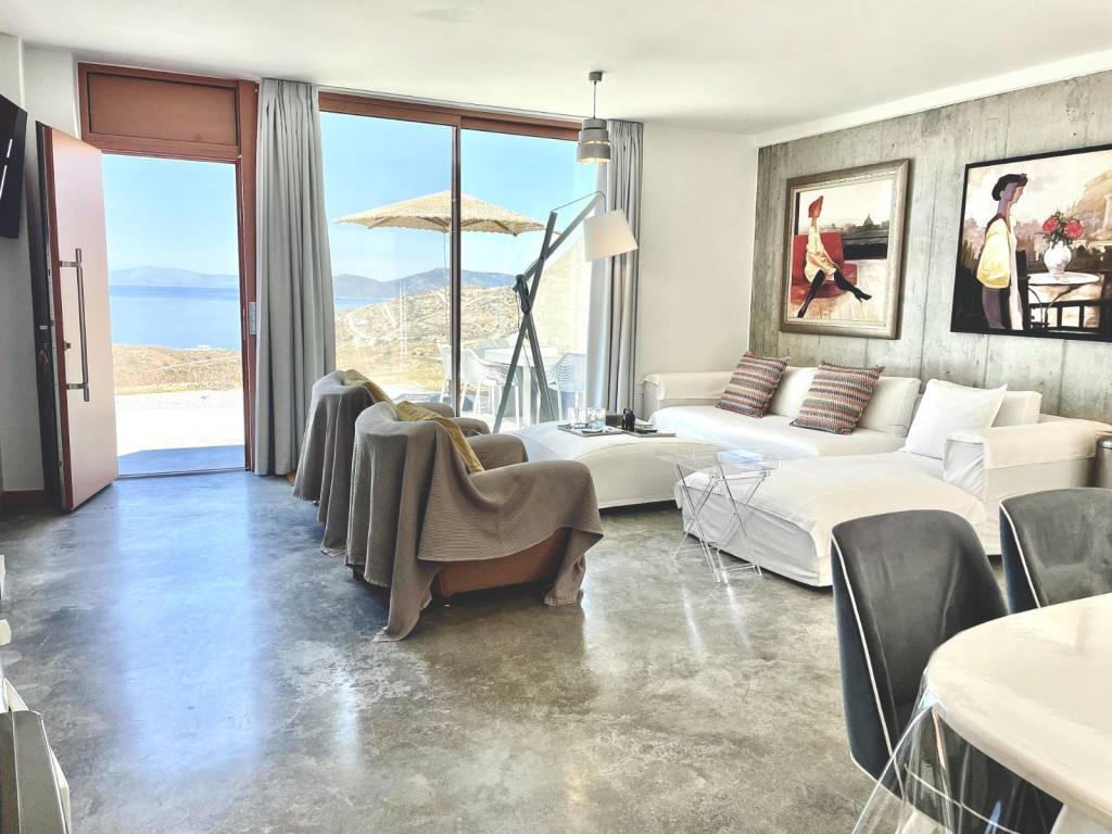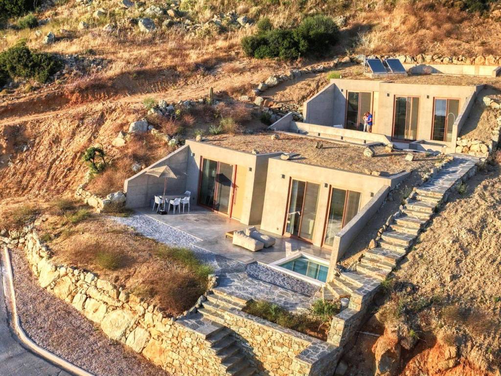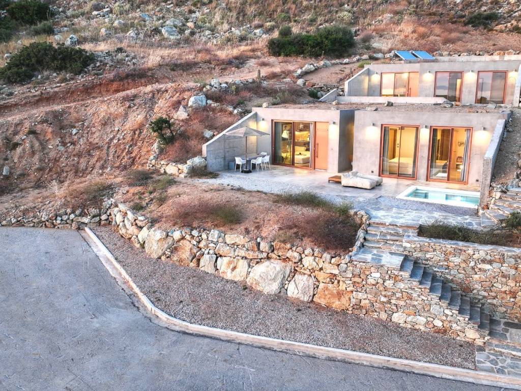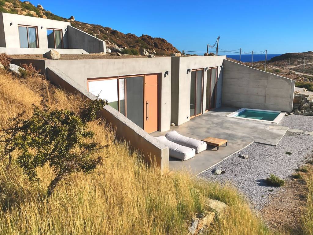 NOTE: This is a private sale listing generated by the owner. Full or partial reproduction of its contents and photos is prohibited by law. Please also note that the price at 590.000 € is NON-NEGOTIABLE and excludes furniture. For sale together My Hidden Iposkafo 2 newly completed, furnished or not earth villas with a lounge pool each, in Karystos - Southern tip of Evia island- 350m from sea and small gulf and 2 mins drive from Agia Paraskevi beach and numerous other sandy beaches. Ideal for hospitality use or transformation to a single luxurious villa of up to 205 sq.m. in two levels with interior elevator. The 2 earth houses flaunt: - up to 35 sq. meters building allowance (υπόλοιπο δόμησης) - separate electricity and water meter each - two 7 sq.m. lounge pools/underground electric pumps - 15 cubic meter underground automatic water tank in case of water cut - 20 cubic meter underground sewage tank (doesn’t need emptying) - floor to ceiling interior height of 2,70 meters in all areas. - ready to use as shown (με το κλειδί στο χέρι) including handpicked brand new stylish furniture, appliances, interior and exterior equipment at the total price of 610.000€. Eco-friendly and brand new My Hidden Iposkafo Upper level villa 73 sq.m + Lower level villa 97 sq.m embrace the earth’s contours measuring 170 sq. m. in total . They accommodate up to 14 persons, thus, also making this a very appealing investment opportunity in the hospitality sector with significant immediate ROI. The exterior yards and verandas boast spectacular, unobstructed sea views and sunset. Both villas have spacious back yards allowing ample air and sunlight. The 2 car ramps enable easier access without using stairs. The property was completed in mid 2025 in this advantageous corner plot within Karystos town planning (εντός σχεδίου πόλεως Καρύστου). PROPERTY DESCRIPTION: Crafted from concrete, glass, steel, pressed cement and Karystos stone. Nestled in steep cliffside, the complex seamlessly integrates with the natural landscape offering versatile viewpoints of the Aegean Sea, Kea (Tzia), Andros and Petalios islands, the Cycladic nature. Sustainability features, organic aesthetics and rooftop greenery all enhance its eco-consciousness and connection with nature. Heating / cooling achieved via geothermal energy and enhanced via autonomous airconditioning units throughout. The complex oozes class and finesse at every point of orientation. Find inspiration from the unique architecture. The floor to ceiling triple-glazed windows by Alumil allow the breathtaking sea vistas to stream into the interiors. Monochromatic white is contrasted by pops of colour in luxury natural finishes and quality materials indoors. LOCATION Discover paradise in the most beautiful corner of southern Evia driving 10 mins from the charming coastal town of Karystos. This is a mere 1,5 hour trip from central Athens and even closer from Athens International Airport just opposite. Arriving at Agia Paraskevi cycladic peninsula will make you feel that you've left the world behind - Amazing turquoise sea views and unforgettable sunsets towards Attica, the Cyclades and the Aegean Sea. OSMAES area stretches along the peninsula of Paximada - Agia Paraskevi and is a perfectly organized area with numerous sandy beaches, superior road system, public lights, water and sewage networks. ACCESS FROM ATHENS My Hidden Iposkafo in Karystos are easy to reach from Athens in two ways. Either by ferry or driving via Chalkida. -Reaching the property FROM ATHENS or ATHENS AIRPORT THROUGH RAFINA PORT: From the port of Rafina, close to Athens Airport, take the ferry crossing to Marmari (1hour duration). Then drive to Karystos town -12 km and an additional 7 km from there to reach the virgin peninsula of Agia Paraskevi and My Hidden Iposkafo. -Reaching the property FROM ATHENS or ATHENS AIRPORT THROUGH AGIA MARINA PORT: Cross to Evia island by ferry via Agia Marina port and reach Nea Styra. The crossing is shorter (40 minutes duration) and then you take the route from Nea Styra to arrive to Karystos town. The whole drive from Nea Styra port to Karystos town will take you 35 minutes - 33 km and an additional 7 km from there to reach the virgin peninsula of Agia Paraskevi and My Hidden Iposkafo. DRIVING FROM GREECE MAINLAND via CHALKIDA: An interesting drive that does not involve a ferry crossing. Simply drive from any location on mainland Greece to get to the bridge of Chalkida that will bring you to central Evia island. From there take the route towards southern Evia to reach Karystos town.