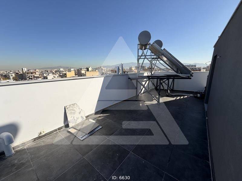 Piraeus, Kaminia - Maisonette 104sqm bedrooms 3, levels 2, 5th - 6th, ready to use, year built 2025, energy class A++, living room, kitchen, bathroom, wc, heating type: autonomous (heat pump), parking open space, dual aspect apartment, luminous, frontage, storage space, solar heater, fireplace, balconies, large balconies, tents, elevator, private terrace, aluminum frames, double glazed windows, door screen, ceramic tiles floors, separate kitchen, secure door, alarm, surveillance cameras, video doorbell, luxurious, swimming pool, private pool, ev charger, residential zone, access from asphalt.
