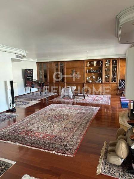 Holargos - Floor Apartment 243sqm bedrooms 4, master bedroom, 5th, good condition, year built 1989, energy class D, living room, kitchen, 3 bathrooms, wc, heating type: autonomous (oil), air condition, parking covered,2, quiet, dual aspect apartment, luminous, unobstructed view, frontage, storage space 14sqm, fireplace, balconies, large balconies, elevator, aluminum frames, double glazed windows, door screen, secure door, video doorbell, south-eastern orientation, close to metro/train (up to 500m).