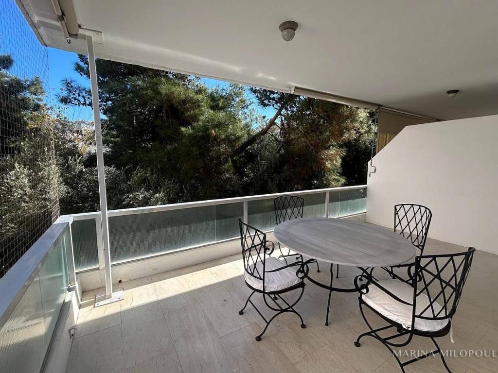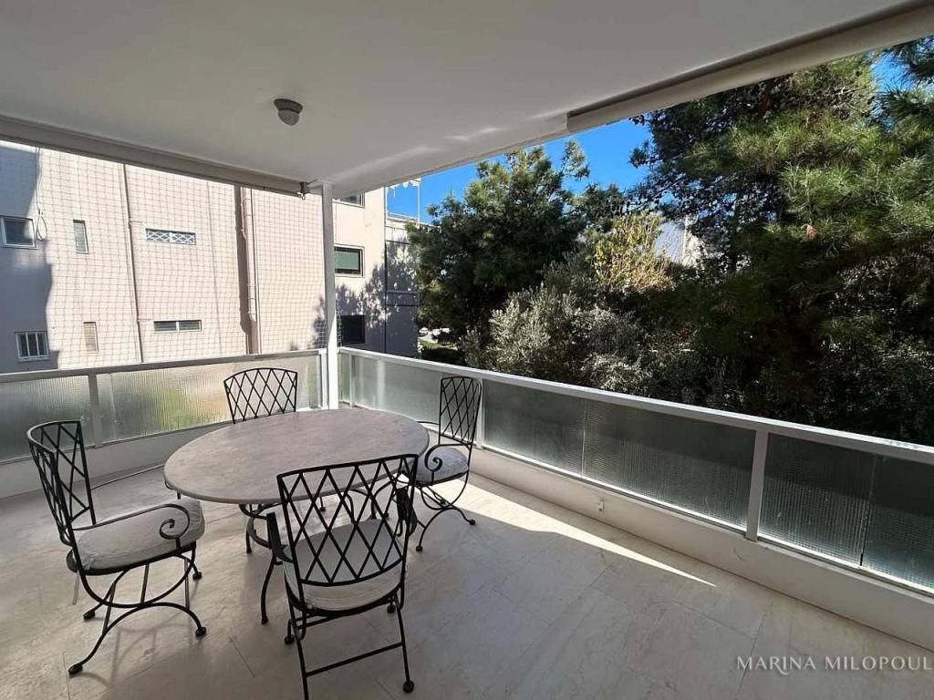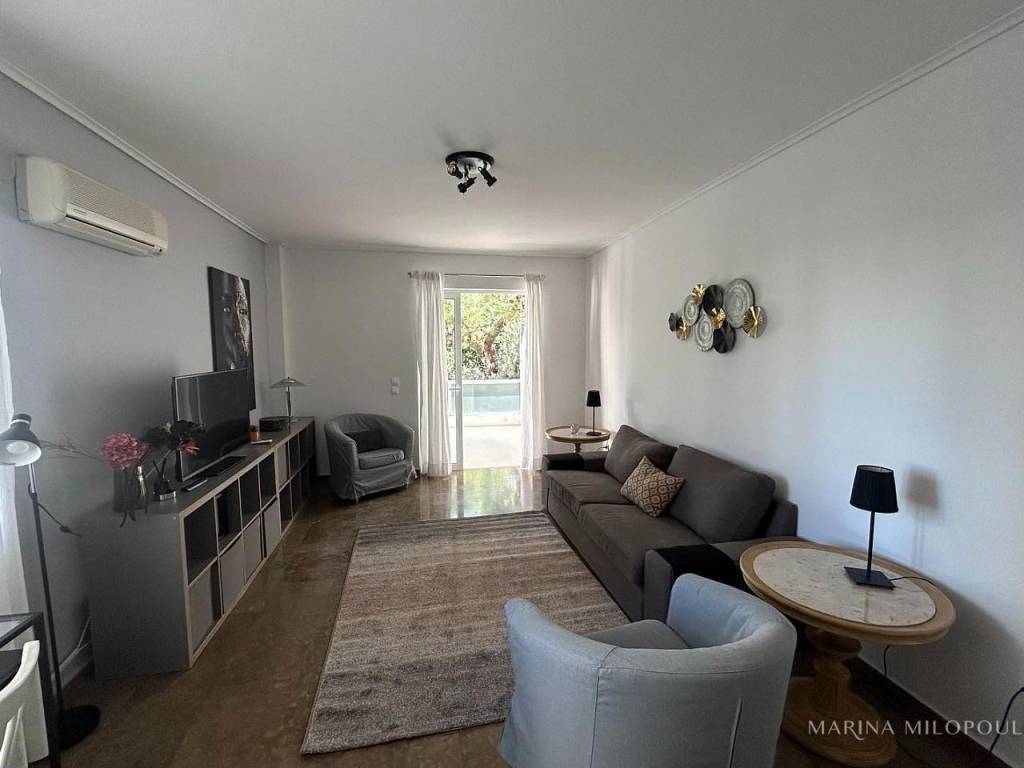 GLYFADA-Center, a furnished apartment, on the 2nd floor, 61 sqm, with large terrace overlooking the garden, East facing.