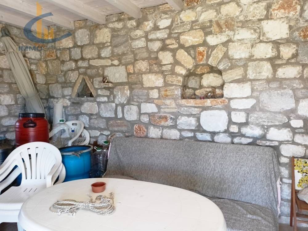 For sale: a renovated stone studio set on a 5,300 sq.m. parcel, planted with olive trees, citrus trees, vineyards, and other fruit-bearing trees. The property benefits from an irrigation water supply.