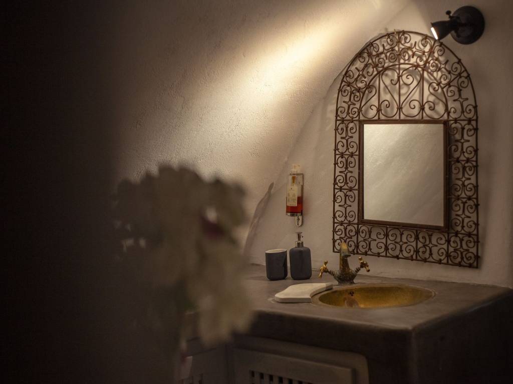 Είναι μια παραδοσιακή κυκλαδίτικη βίλα με 3 ξεχωριστά, διπλανά υπόσκαφα, σε μια ιδιωτική, περιφραγμένη αυλή και έναν υπέροχο καταρράκτη – τζακούζι. Είναι και αυτό ένα «υπόσκαφο» – το μισό είναι μέσα σε ένα βράχο στη γη και το άλλο μισό ορατό στο ίδιο επίπεδο με την αυλή. Αποτελεί ξεκάθαρα το highlight της αυλής. Επίσης, στον ίδιο χώρο της αυλής υπάρχουν μεγάλο τραπέζι με καρέκλες, δύο μεγάλοι ξύλινοι πάγκοι, τραπεζάκι και καρέκλες καφενείου. Η βίλα είναι 147 τ.μ. που σημαίνει άνεση και πολυτέλεια. Όπως περιγράψαμε πιο πάνω υπάρχουν στη σειρά 3 διαφορετικά υπόσκαφα, άλλο στην επιφάνεια της αυλής, άλλο λίγο πιο χαμηλά, τα οποία είναι 42 τ.μ., 23 τ.μ. και 85 τ.μ. το καθένα. Ιδιαίτερη περίπτωση σπιτιού με γραφικά, παραδοσιακά, αυθεντικά αρχιτεκτονικά στοιχεία. Ας σας ξεναγήσουμε νοερά στο πρώτο υπόσκαφο : μπροστά σας μία πλήρως εξοπλισμένη κουζίνα, μία cozy γωνία με ένα γωνιακό καναπέ – διπλό κρεβάτι και τραπεζάκια. Στον ίδιο χώρο υπάρχει ένα minimal μπάνιο με ντουζ. Και εδώ θα σας κάνουμε μια έκπληξη: μια αισθησιακή, μαροκινή γωνία στην οποία βρίσκεται ένα θερμαινόμενο βαρέλι υδρομασάζ- hot tub! Και προχωράμε στο δεύτερο υπόσκαφο (23 τμ) που υπάρχει υπνοδωμάτιο με διπλό κρεβάτι και ένα ολόχρυσα βαμμένο μπάνιο με χοντρά σχοινιά να πέφτουν ως κουρτίνα αντί πόρτας. Αυτός ο χώρος μπορεί να φιλοξενήσει έως 2 άτομα. Και ερχόμαστε στο τρίτο υπόσκαφο, (85 τμ), που διαθέτει υπνοδωμάτιο σε μαροκινό στυλ με ένα υπέρ διπλό κρεβάτι, ένα μικρό κουζινάκι, ένα δευτερεύον open space υπνοδωμάτιο με διπλό στρώμα (1.40μ x 2,00μ), ένα super huge & exceptional μπάνιο με δυο θέσεις ντουζ. Τιμή συζητήσιμη. Ενοικιάζετε μόνο ετήσια.