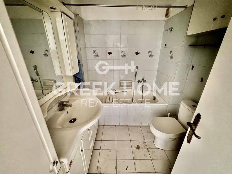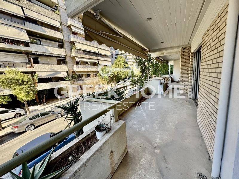 Nea Smyrni - Floor Apartment 127sqm unfurnished, bedrooms 3, 1st, good condition, year built 1987, energy class F, living room, hall, kitchen, bathroom, wc, heating type: central (natural gas), air condition, parking ground floor, quiet, dual aspect apartment, luminous, corner, unobstructed view view, frontage, storage space 8sqm, solar heater, fireplace, balconies, large balconies, balcony 40sqm, tents, elevator, aluminum frames, double glazed windows, wood & marble floors, separate kitchen, night electricity discount rate, secure door, alarm, price is negotiable, special offer, commercial use, close to square (up to 500m), close to park (up to 500m).