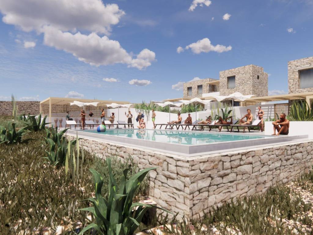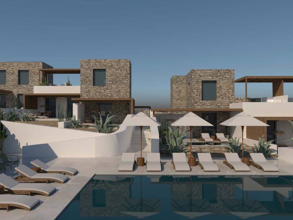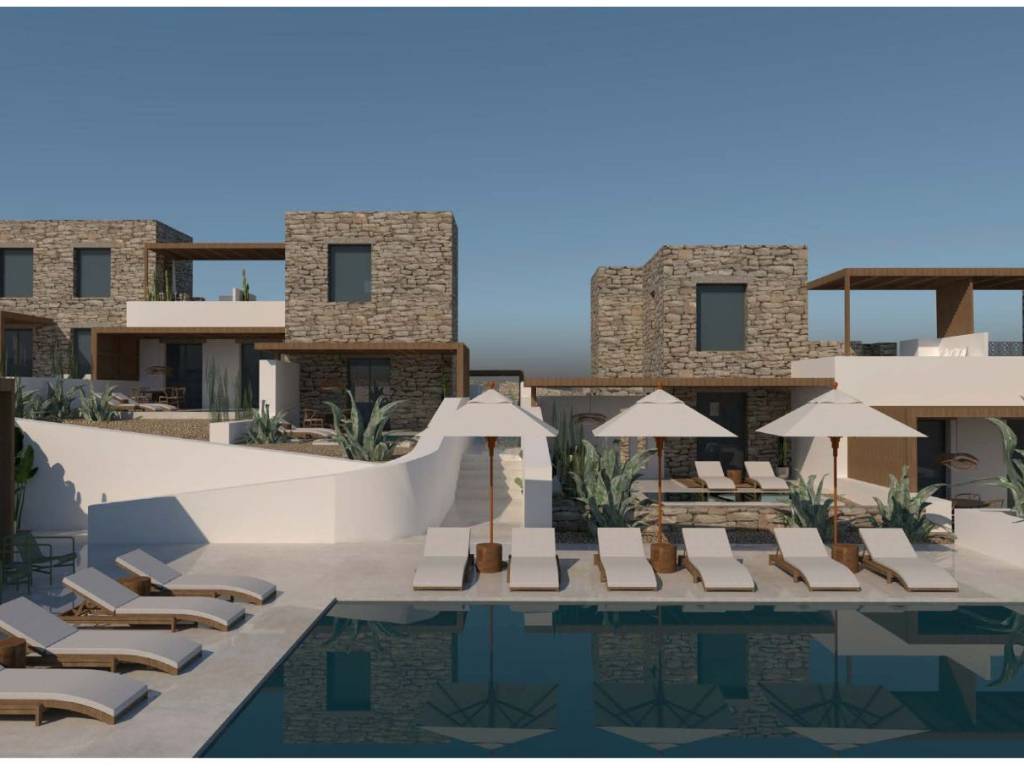 A beautiful boutique hotel built in 2023-2025. 10 wonderful suites of 35 sq.m. each one (30 net), with amazing views of the bay of Ftelia Mykonos. The 6 ground floor suites have huge terraces with private pools. The 4 on the first floor have terraces and the possibility of placing a jacuzzi, spa. Shared pool 90 sq.m. with sun deck feature, amazing views and common areas and pool bar 300 sq.m. Parking spaces, just 5 kilometers from Chora Mykonos, 6 from Mykonos airport and 3 kilometers from Ano Mera. The distance from the sea is 200 meters and from the world famous Alemagou just 400 meters. Ultra-luxurious construction with hidden and ceiling lighting in every suite, storage spaces and engine rooms, built-in wonderful furniture, curated by the best teams of architects and interior designers. The construction is 75% complete and is available for sale, or alternatively for a 10+5 year lease for an investor to complete and operate the hotel. There is a complete construction file, perspectives, construction plans until the completion of the project. Completion time less than 3 months and immediate availability for the 2026 season.Neighboring, staff rooms of excellent quality and price are available that ensure the right quality of life for employees.