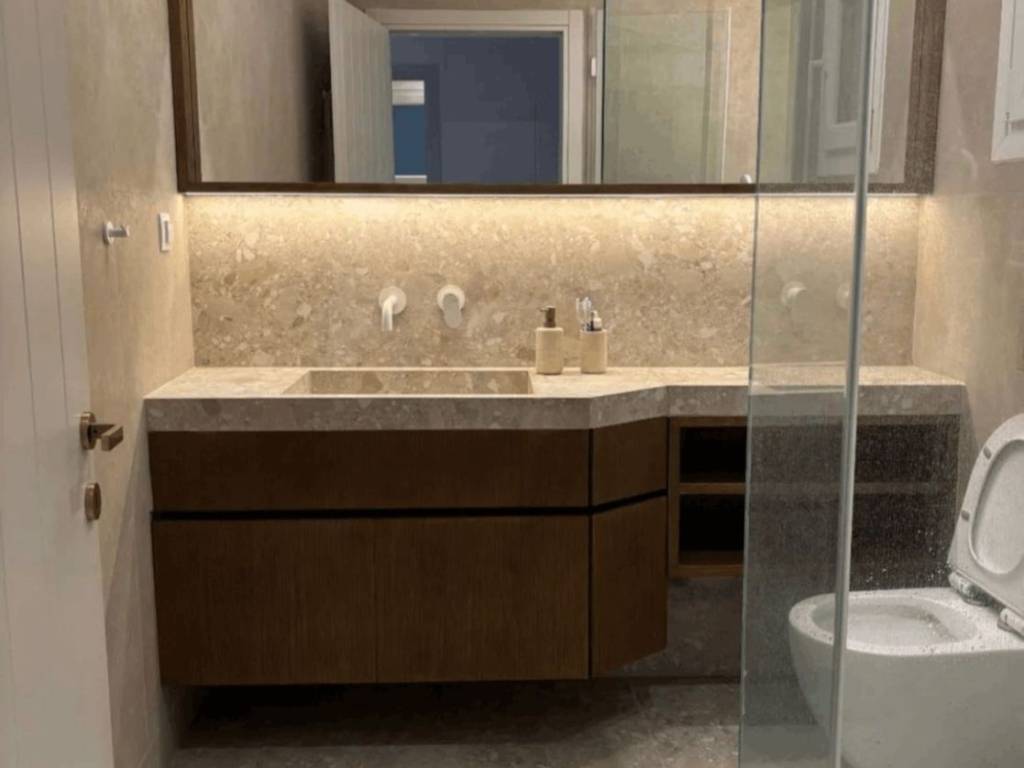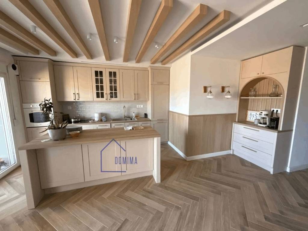 Newly Built Two-Bedroom Floor Apartment with Underfloor Heating – New Swimming Pool Area A newly built two-bedroom floor apartment located in a two-storey building, featuring dry-construction underfloor heating and a heat pump system. The apartment offers: Two spacious bedrooms An additional independent auxiliary office space Luxury bathroom and separate WC Inside the apartment there is: A storage/laundry room for washer & dryer Large six-door wardrobes along the hallway A built-in five-door wardrobe in one of the bedrooms Kitchen & Equipment The kitchen is of luxury custom carpentry, consisting of: 3-meter-long kitchen cabinets A 2-meter island Fully built-in electrical appliances It is equipped with: Built-in refrigerator Built-in dishwasher Oven Extractor hood Induction hob —all by Franke. Features & Energy Efficiency Bright and through-apartment, with two large balconies Reinforced composite window frames Windows in all rooms and both bathrooms High energy efficiency with: Thermal insulation Heat pump State-of-the-art underfloor heating Provision for photovoltaic panel installation on the tiled roof, allowing future energy autonomy Additional Amenities Private parking space Luxury elevator with access to the basement Basement storage room of 22 sq.m. Located in the New Swimming Pool area ️ Completed in summer 2025 ✅ Immediately available