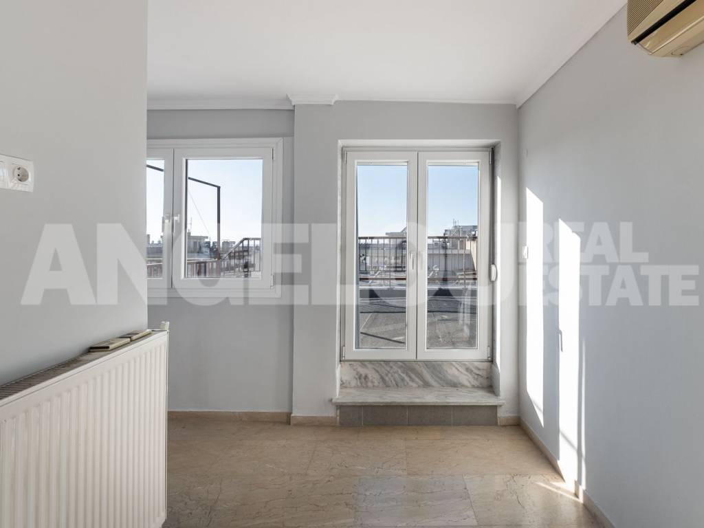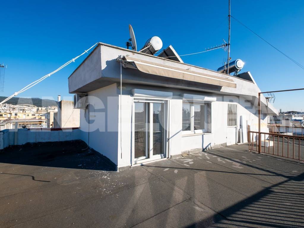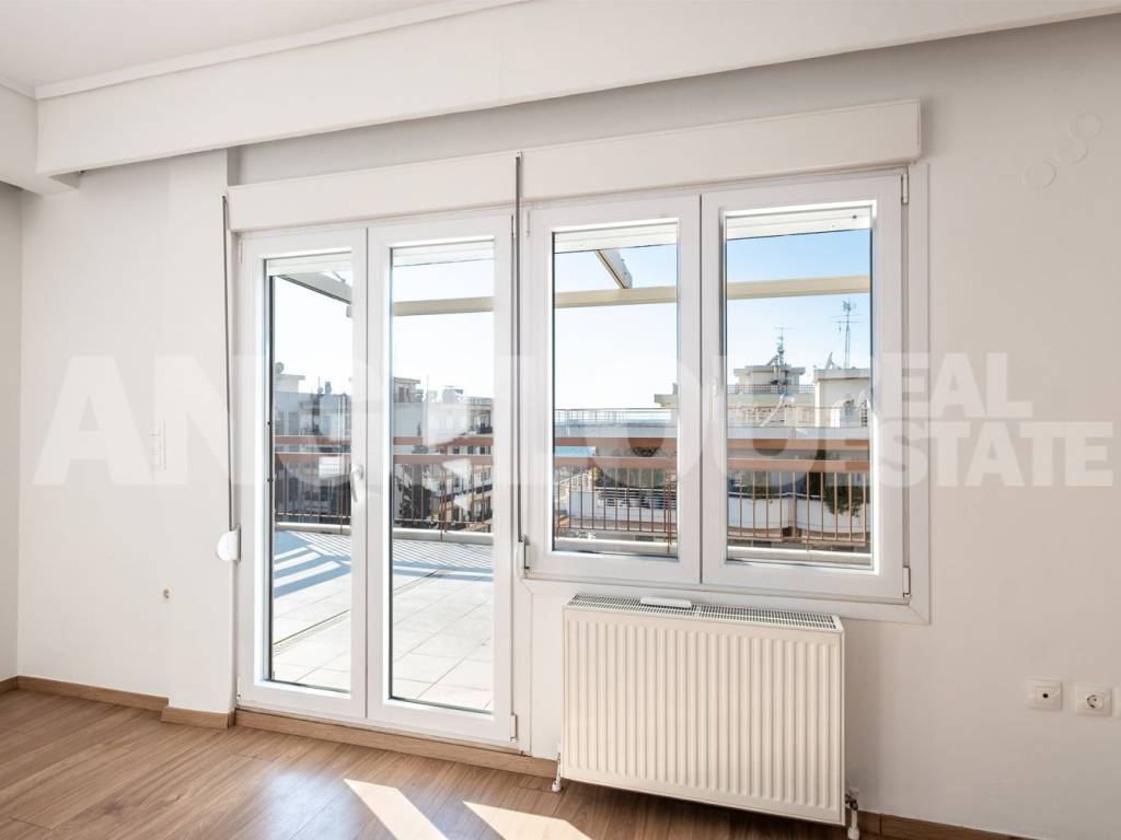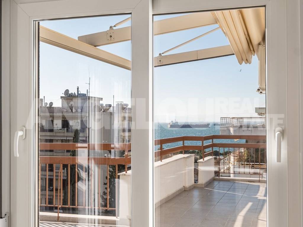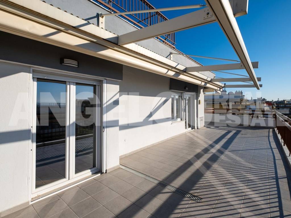 Thessaloniki, Faliro. Beautiful penthouse of 120 sq m with a sea view for rent. The apartment is located on the seventh floor of the building, it is fully renovated and very sunny. It has two large verandas with a total area of ​​100 sq m and amazing sea views. It consists of a large living room, separate kitchen, laundry room, two spacious bedrooms with wardrobes, additional wardrobes in the hallway, a bathroom with an enclosed shower and a half bathroom. An internal staircase leads to the third room which has access to its own veranda. The apartment has autonomous natural gas heating as well as four air conditioners. Both verandas have electric awnings with lighting. Property ID: 400 ANGELOU REAL ESTATE Tel.: +302310263215, +302310263775 Mob.: +306945385155 www.angelou-realestate.gr email: info@angelou-realestate.gr Mitropoleos 46-48, Thessaloniki, 54623, Greece