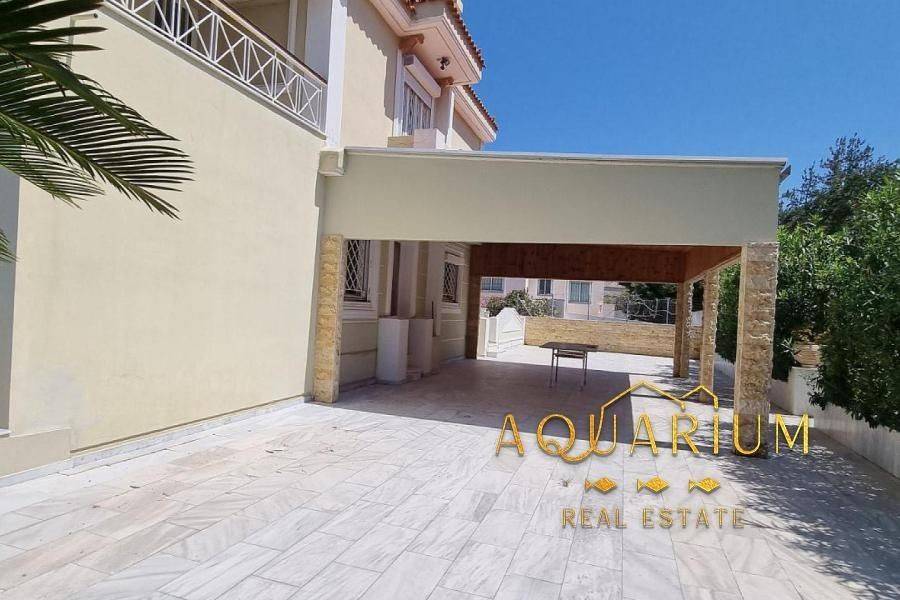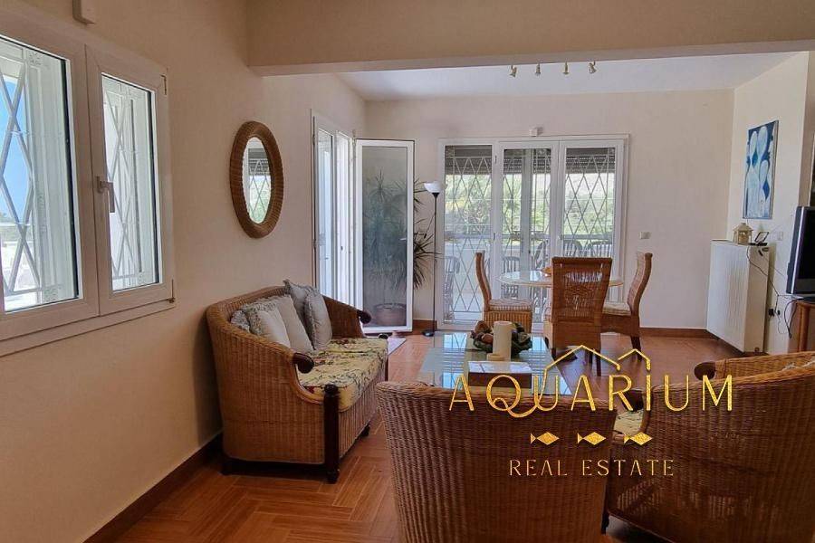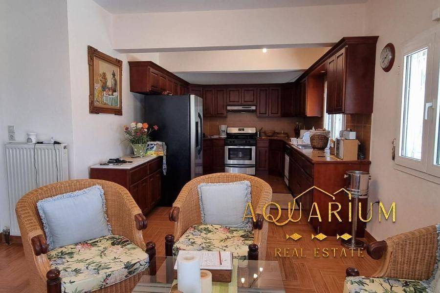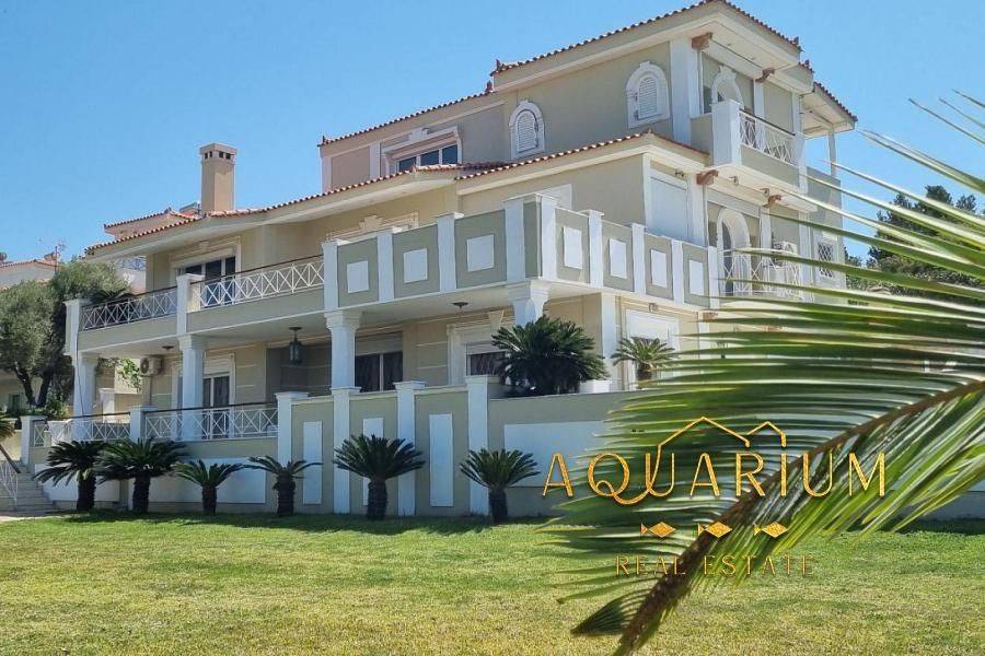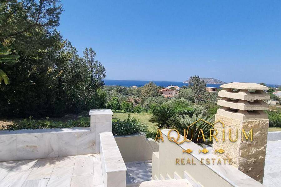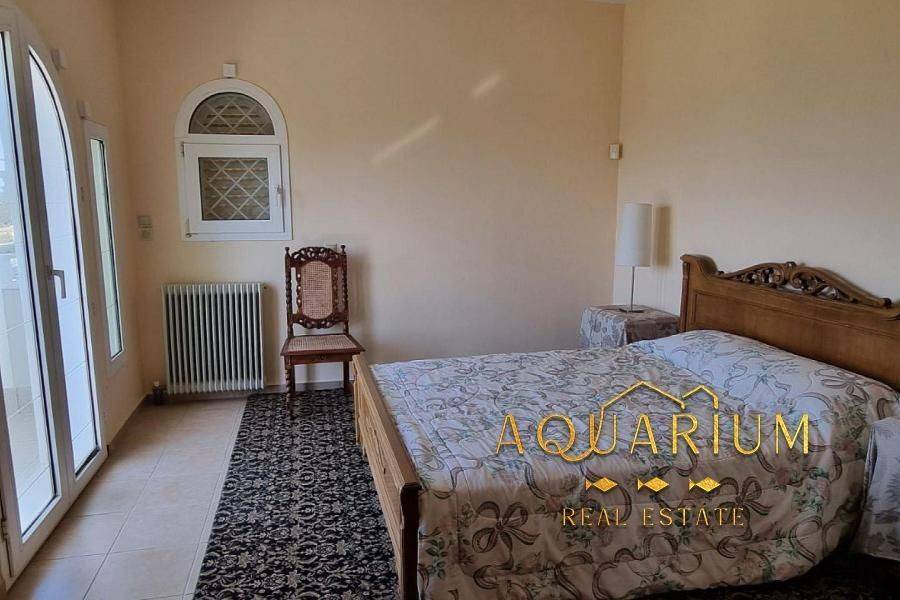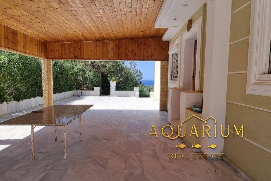 Thimari - in a beautiful amphitheatric location, there is this 3 storey Villa of 480 sqm , set in a large piece of land of1500 sqm , offering Panoramic, unobstructed sea view and open space view. Good construction, sunny and bright property with large veranda and excellent house orientation. It consists of 2 living rooms, 2 kitchens, 5 bedrooms, 4 bathrooms, utility room, playroom, garage and storages. Autonomous petrol heating by floor, alarm system, solar water heater. Only in 750 meters distance from the beautiful Thimari organized and/or free beach.