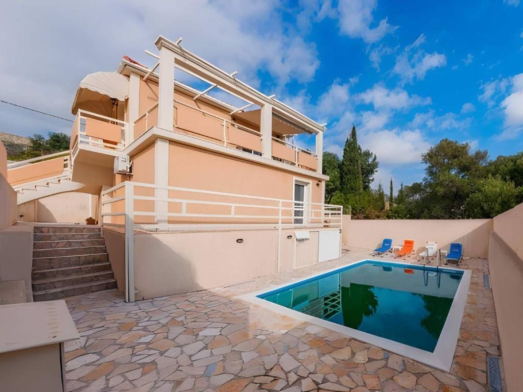 Sea View House with pool for Sale in Kefalonia Eleios–Pronnoi | Ratzakli 145 sq.m. | 4 Bedrooms | 3 Bathrooms | Private Pool | Furnished Set in an amphitheatrical position with unobstructed sea views, just outside the charming village of Ratzakli, this elegant two-level villa of 145 sq.m. is offered for sale fully furnished. Built in 2017 and classified Energy Class B, the property combines comfort, privacy, and excellent rental potential. Property Details Plot: 477 sq.m. Layout: Living room, dining area, fully equipped kitchen Bedrooms: 4 Bathrooms: 3 Parking: Private on-site Condition: Furnished, move-in ready Outdoor Living Private swimming pool Landscaped garden with flowers and trees Perimeter stone paving Covered veranda on the upper floor with spectacular panoramic views of the Ionian Sea—ideal for relaxing or entertaining Features & Amenities Sea view & open outlook Air conditioning (heating/cooling) Aluminum frames with double glazing & insect screens Tiled floors Built-in wardrobes Electrical appliances included Storage room Night-rate electricity Entrance steps Distances Sea: 400 m Village: 200 m Skala resort: minutes away City (Argostoli): 25 km Airport: 26 km Location Highlights A short drive brings you to the cosmopolitan resort of Skala, renowned for its long sandy beach, traditional tavernas, and lively atmosphere. Nearby beaches Kaminia and Mounda add to the area’s appeal, attracting visitors year-round. Ideal for a permanent or holiday residence, as well as touristic exploitation during the summer months, this villa offers a rare combination of sea views, accessibility, and proven demand in one of Kefalonia’s most sought-after regions. Please contact us via WhatsApp message, or fill out the contact form here.