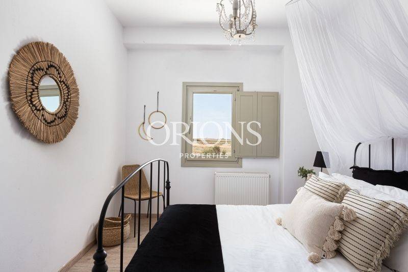 From the terraces and outdoor areas, the island of Antiparos is clearly visible on the horizon, directly opposite the property. A short drive brings you to the port, where the ferry departs for Antiparos, making the crossing in just ten minutes and turning spontaneous escapes to the neighboring island into an easy part of everyday life.