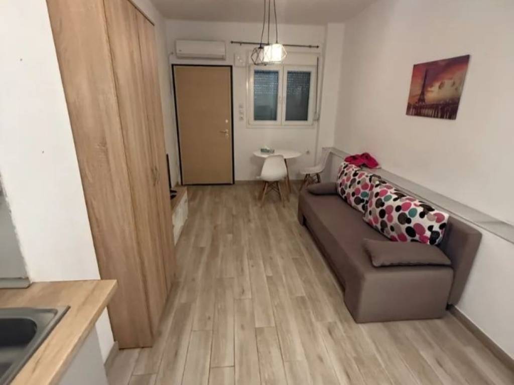 Bright, airy studio of 32 sq m. for rent on the ground floor in Eastern Thessaloniki, in the Olgas–25th March area. The property was fully renovated in 2021 and is delivered freshly painted, fully furnished and equipped with all electrical appliances. It consists of an open-plan living room-kitchen area with sofa bed and bathroom. It has an armored door, energy-efficient windows with double glazing and screens, Inventer air conditioning and zero shared expenses. Excellent location, next to transportation, new beach and market. Ideal for students, workers or couples.