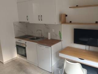 Dafni, Apartment For Rent, 25 sq.m., Property Status: Refurbished, Floor: Basement, 1 Bedrooms 1 Kitchen(s), 1 Bathroom(s), Heating: Electricity, Building Year: 1980, Energy Certificate: A, Floor type: Tiles, Type of door frames: Aluminum, Features: Elevator, Security door, Electric Appliances, Double Glazed Windows, Metro, Furnished, Not Roadside, AirConditioning, Painted, Renovated, For Students, Price: 490€. Property Code: Σ13636, FAMILY BROKERS, Tel: 6906118579, email: info@familybrokers.gr