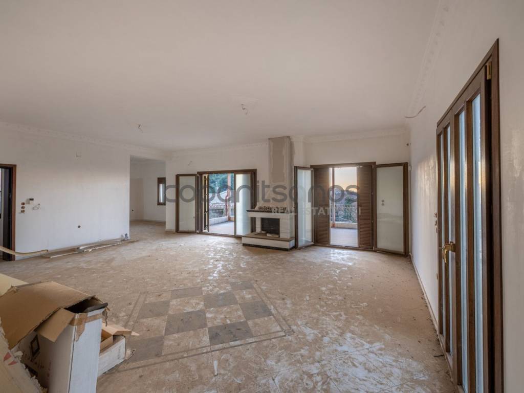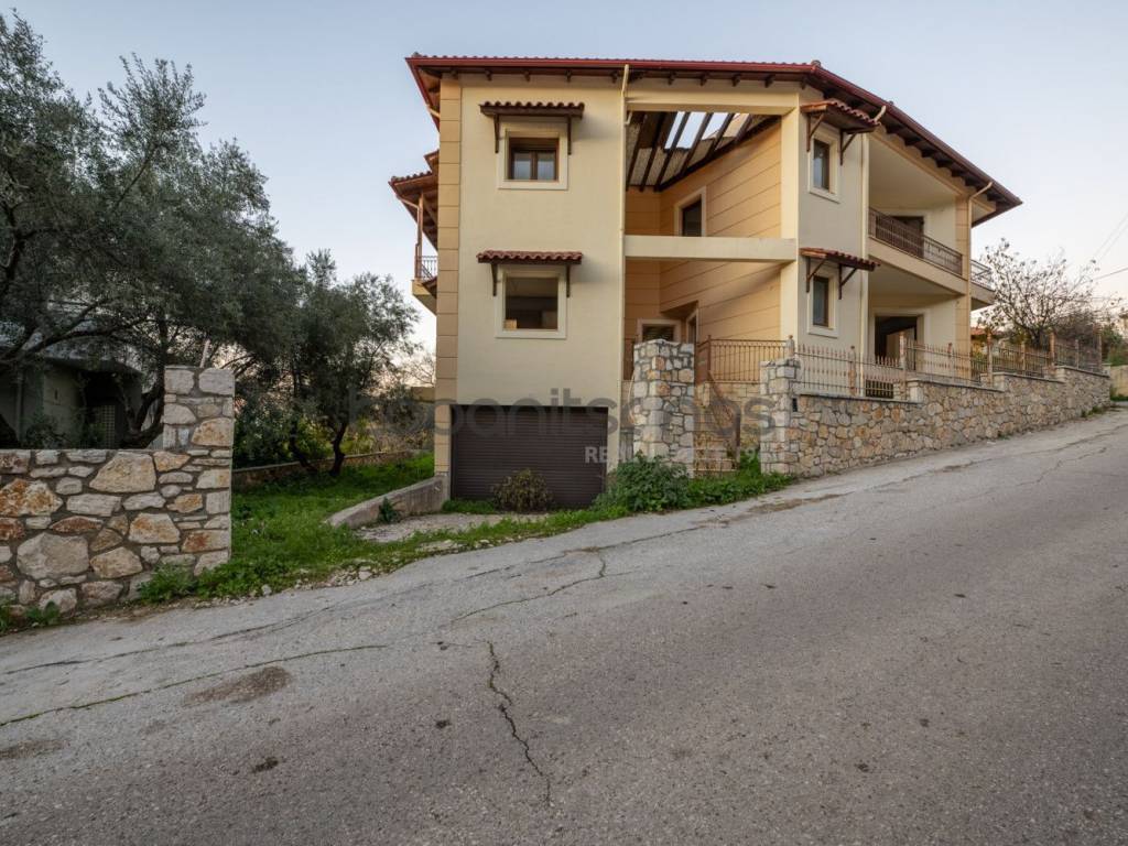 In one of the quietest and most high-quality residential areas of Patras, in Kefalovryso, an exceptional three-storey detached house is offered for sale, with a total surface area of 440 sq.m., set on a 500 sq.m. plot, enjoying panoramic views and direct access from an asphalt road. The property is free-standing on all sides, developed over three levels, and offers spacious, bright, and functional interiors, meeting high standards for both private residence and investment use. The building was originally designed to function as two independent apartments (raised ground floor and first floor) with an additional basement level, while it can alternatively be used as a single unified residence. Construction began in 2005 and was partially completed in 2007. Each level has an approximate surface area of 179 sq.m. and offers full flexibility for conversion into an independent residence. Each floor includes three bedrooms. The ground floor, with a total area of 179 sq.m., can be fully configured according to the needs of the new owner and already features a fireplace. The location combines absolute tranquility with immediate access to the city center, making the property an ideal choice both for high-end permanent residence and for investment purposes with strong value-appreciation prospects. Property Code: 4024 Sale Price: 450,000€