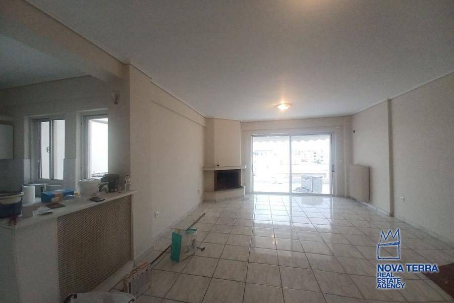 GLYFADA - PYRNARI, Penthouse,, Rental, 118 sq.m, year built 1996, 4 rooms, 4th, View: Unobstracted view, Various Characteristics: Balcony, Bath (2), Escalator, Fire Place, Kitchen, Living room, Refurbished, Store Room, Flooring: Tile, Wooden floor, Heating: Air Conditioning, Αutonomous oil heating, Access road, Aluminium panels, Bright, From Side to Side, Luxury, Night charge, Painted, Residential area, Security Alarm, Security Door, Solar Heating, Tents, In perfect condition: Parking area: Parking, Energy class: D. property ID: 52925, www.nova-terra.gr