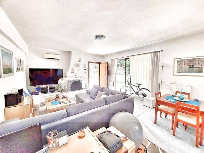 Voula, Kalymniotika - Apartment 70sqm fully furnished, bedroom, levels 1, ground floor, very good condition, year built 1980, renovation year 2000, energy class E, living room, kitchen, bathroom, heating type: central (oil), air condition, a/c type splits, quiet, luminous, painted, fireplace, loft storage, garden, garden 70sqm, built in appliances, aluminum frames, stone floors, night electricity discount rate, secure door, pets allowed, residential zone, southern orientation, access from asphalt, short term lease, close to sea (up to 500m), close to bus stop (up to 100m), close to market (up to 200m).