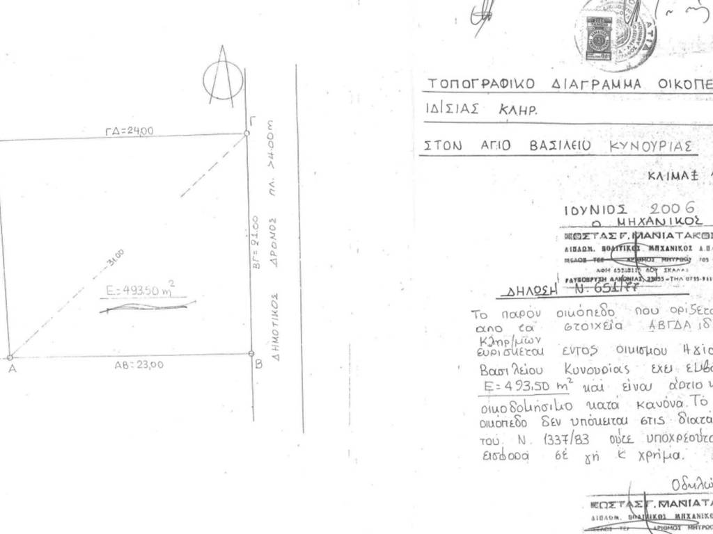 500sqm plot for sale in an excellent location in the village of Agios Vasilios, Kynouria, near Leonidio - Price negotiable!