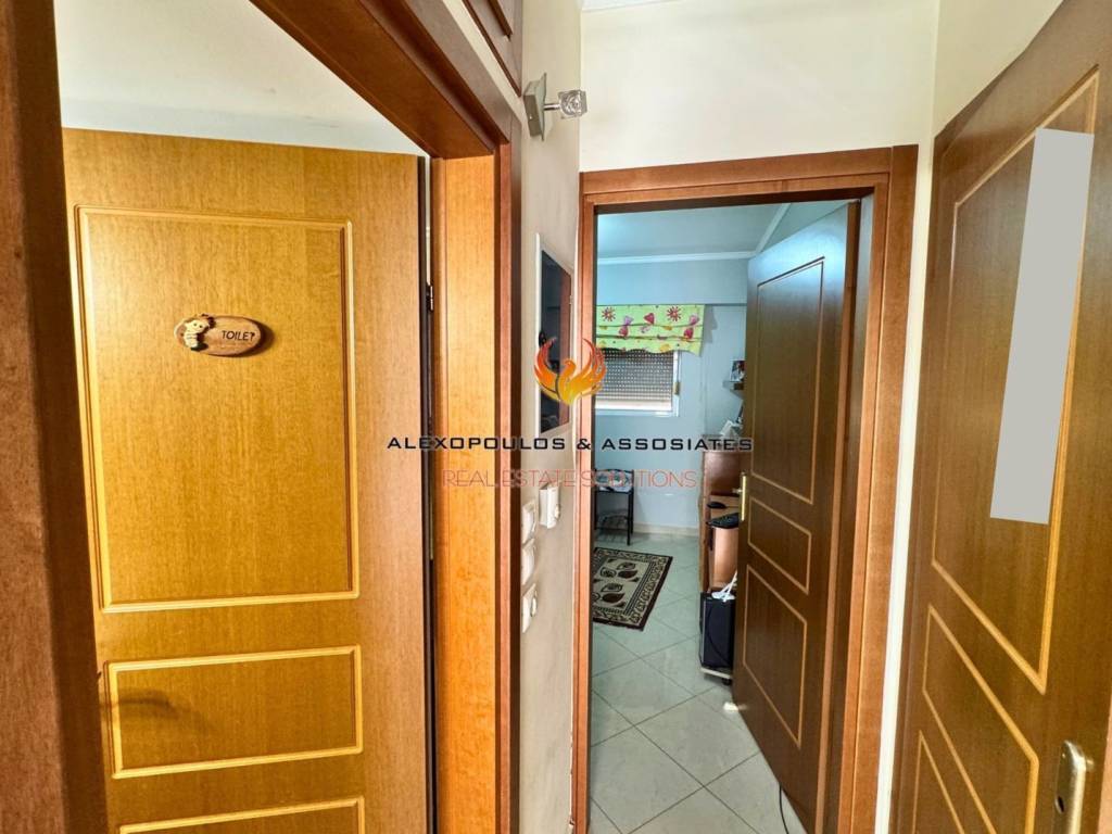 The apartment consists of a spacious open-plan living room and kitchen with fireplace, leading to a large front-facing balcony. It includes two bedrooms with built-in wardrobes and one bathroom with provision for a washing machine. Heating is autonomous (oil), and the property also features a solar water heater and a security door. Additionally, a basement storage room of 3.8 sq.m. is included. The location is highly convenient, with a supermarket, pharmacy, and bus stops within very close distance, covering everyday needs. The Vokou Grove is just a 7-minute walk away, suitable for outdoor activities. • Suitable for families or couples. Year of construction: 2007 (completed in 2011) Open-plan living room – kitchen with fireplace Large front-facing balcony 2 bedrooms with built-in wardrobes 1 bathroom with space for washing machine Autonomous oil heating Solar water heater Security door Basement storage room: 3.8 sq.m. No parking space available