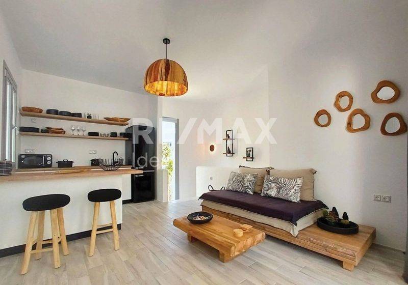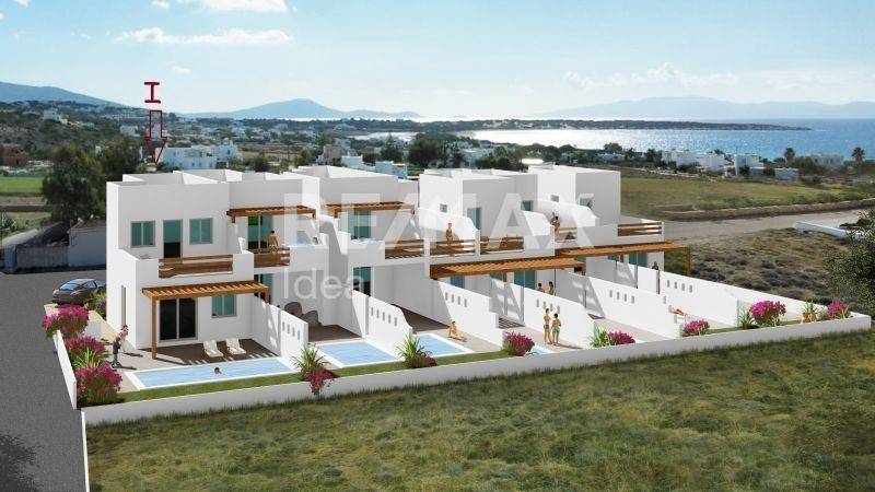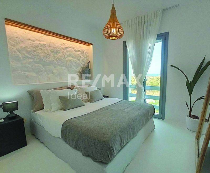 This is a 91 sq.m. maisonette just 400 m away from the beach, which has got an external garden of 200 sq.m., a private pool and a parking space for the comfort you need in the area. The maisonette is on the corner, front-facing and part of a complex under construction consisting of 9 independent houses with unlimited views of the surrounding area and the sea. On the ground floor, you can find a bright open kitchen, dining area on a raised bench and a living room, a bedroom with a double bed and a bathroom, whereas outside there is a beautiful covered area with a pergola, as well as the swimming pool with space for sun loungers. On the first floor, it has got a large bedroom, bathroom and a beautiful veranda with a dining area and living room for relaxation and romantic moments with views of the Aegean sunset. In all areas of the maisonette, the Cycladic element will dominate, harmoniously combined with the modern minimalistic aesthetic characterized by earthy details, wood and stone.