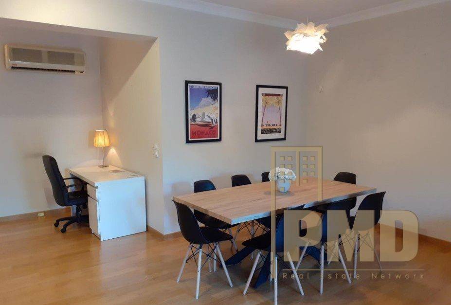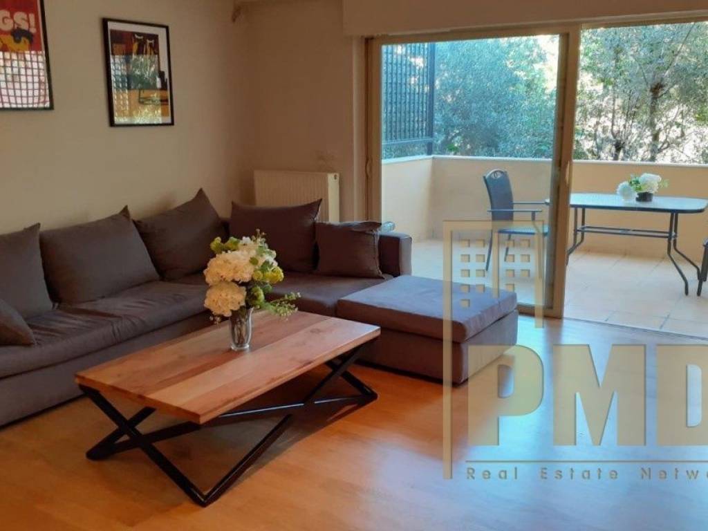 Glyfada (Golf), area 130 sq.m., bright, renovated first-floor apartment in a real estate complex with 24-hour security, gym, and children's playground. It features a living room with dining area, kitchen, 2 bedrooms, 2 bathrooms, and 1 guest WC. The balconies offer a wonderful view of the gardens, combining comfort and aesthetics in a modern living environment. It is located in a quiet neighborhood, within walking distance of Glyfada's main market and the beach. Furniture optional.
