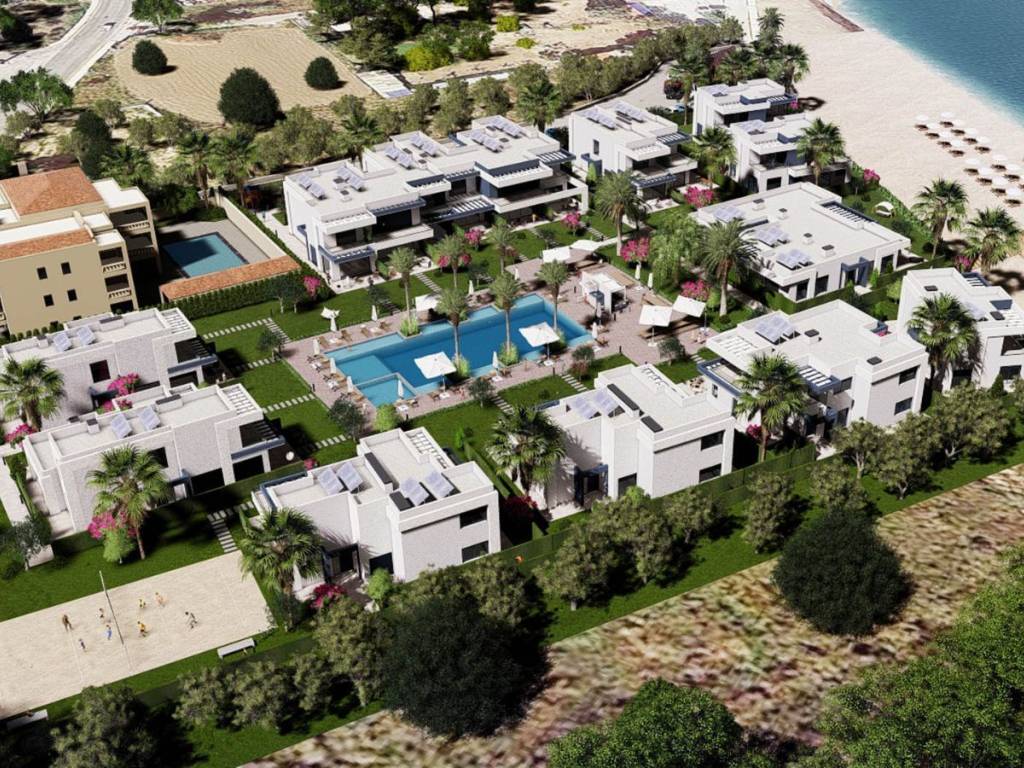 Discover this eco-friendly villas in the emerging residential area of Kontari, Chios. This modern home is designed with sustainability in mind, featuring three levels of thoughtfully planned living space. The ground floor includes a master bedroom with an en-suite bathroom, an expansive kitchen-living-dining area, and direct access to a versatile basement that can be customized to your needs. The first floor boasts three additional master bedrooms, each with its own bathroom. The property is equipped with advanced thermal insulation, a desalination system, photovoltaic panels for energy efficiency, underfloor heating from REHAU, and air conditioning. Surrounded by beautifully landscaped gardens and just steps away from a blue flag beach and coastal promenade, this maisonette offers both tranquility and convenience. Enjoy communal amenities including a swimming pool, BBQ area, beach volleyball court, and playground. Highlights – Total area 93sqm (example of 1B apartment), 2 Bedrooms- 2 bathrooms – Energy-efficient systems: photovoltaic panels and underfloor heating. – Direct access to blue flag beach and coastal promenade. – Communal areas include pool, BBQ zone, and playground. – Close proximity to schools and shops.