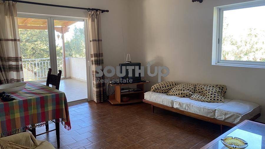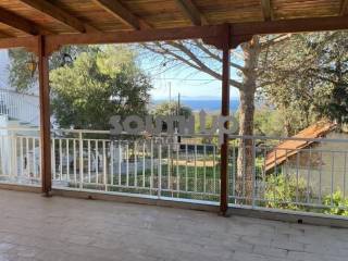 Palea Fokea, Thymari - Detached House 150sqm plot 460sqm, partially furnished, bedrooms 4, levels 2, semi-basement (75sqm, 2 bedrooms, living room, kitchen, bathroom) - ground floor (75sqm, 2 bedrooms, living room, kitchen, bathroom), very good condition, year built 1980, energy class G, 2 living rooms, 2 kitchens, 2 bathrooms, heating type: autonomous (air condition), parking open space, quiet, luminous, sea view, storage space, garden, aluminum frames, without common charges, secure door, pets allowed, residential zone, north-western orientation, access from asphalt.