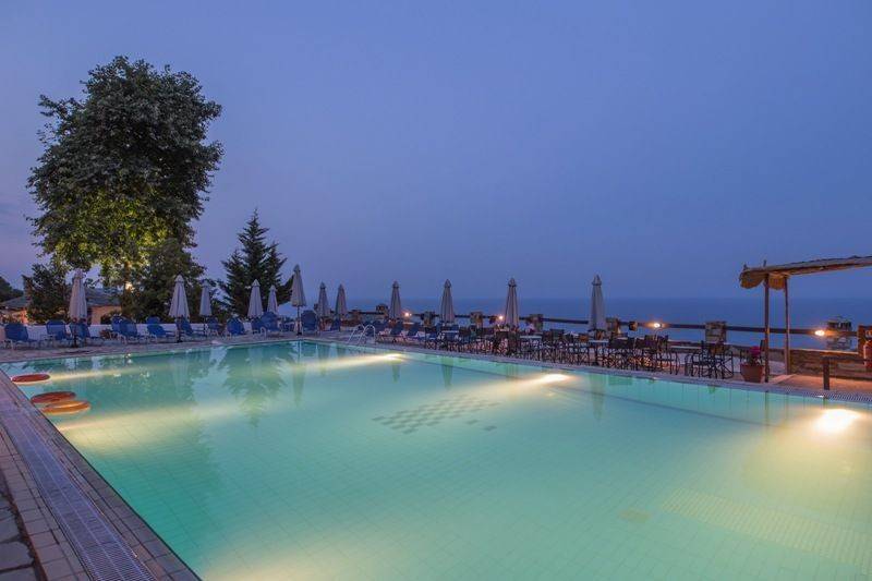 Hotel 4* , in a plot of 8.200s.m. , the total size of the buildings is 3800s.m., consists of 79rooms, built on the beautiful mountain of Pelion next to Tsagkarada village and the award winning beach of Milopotamos. The hotel is built according to the local architecture style consists of small buildings built on the slope of the mountain , offering amazing sea view from all its spaces. There is also a beautiful outside pool and pool area with a breath catching sea view, 2 restaurants, lounge room, and a congress hall fully organized. The hotel is in full operation with high rankings , all of the rooms include a fireplace . It is situated only 3,9 km from the award winning beach of Milopotamos, 24km from the Pilion Ski center, 88km from the National Airport of Nea Achialos and 388km from the International Airport of Athens Eleftherios Venizelos. It is a unique resort ideal for summer and winter vacation ideal for all year through operation