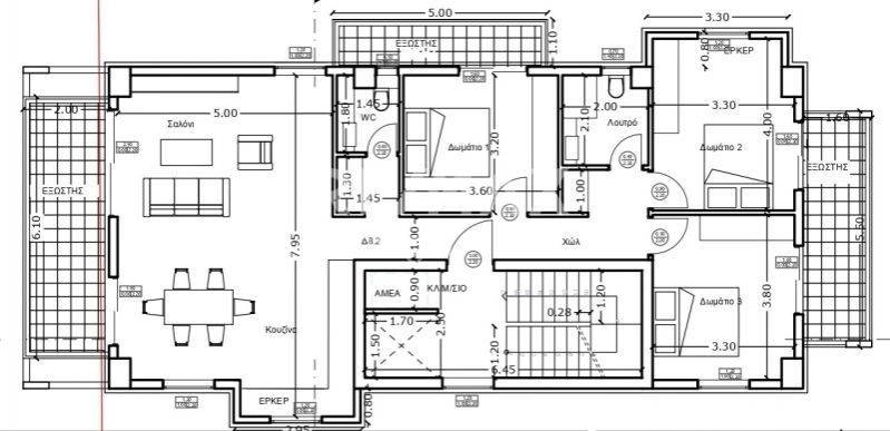 3-room flat new, second floor, Center, Thermi