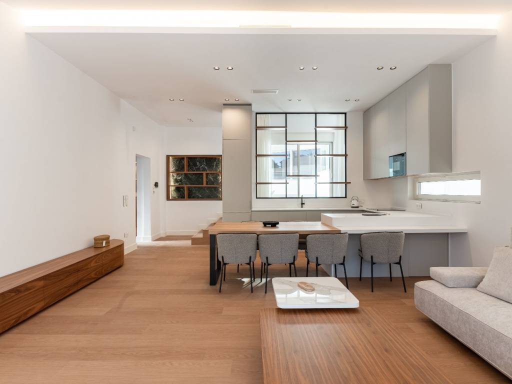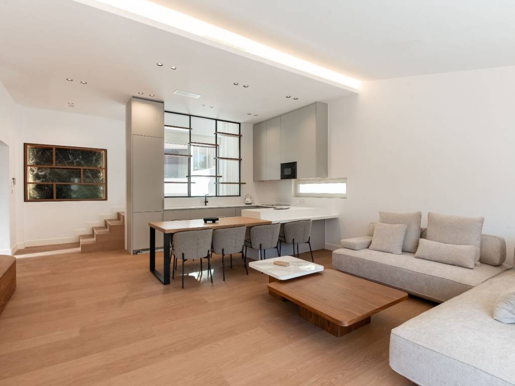 • Heating & Cooling: Underfloor Rehau heating, LG heat pumps, Galletti fan coil units • Floors: Premium Belgian Quick Step wooden finish flooring and top-tier oversized Italian tiles (Italgraniti, Flaviker) • Windows & Frames: Alumil energy-efficient lift and slide aluminum window systems with four seasons glass • Doors: Minimal frameless Golden Doors interior doors and anti-theft top tier armed doors for each apartment • Security/Smart Home features: Hikvision CCTV( 100% indoor and outdoor coverage), smart alarms, remote-controlled access, remote heating control • Kitchen: Fully equipped with built-in Neff appliances, Corian countertops, Rehau kitchen fronts • Furniture: Fully furnished with premium AL2 designer furniture • Marble & Stone: White travertine façade, Premium Naxos marble staircases • TV Setup: 75” Samsung Smart TVs in all living areas • Lighting & Ambience: Fragrance diffusers in communal spaces, curated lighting design • Exterior Finishes: Pergolas, BBQs, Jacuzzi or Heated Pools (in most units) Location Perks