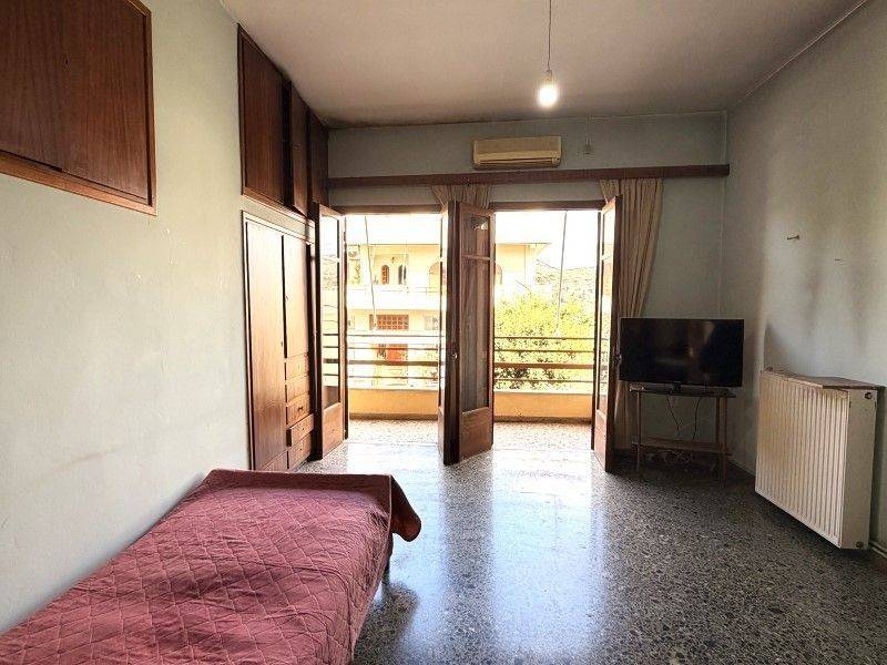 The property is arranged over a ground floor and first floor, and also includes a loft. The ground floor is 74 sqm., features a closed parking space as well as an additional area that can be used as a storage room or other space. Accessing the first floor 74 sqm. from the main entrance, one enters the dining area. To the left is the first bedroom, with access to a balcony overlooking the main road. To the right extends a hallway with a loft storage area. Continuing along the hallway, there is the second bedroom, followed by the kitchen, while the bathroom is located opposite the kitchen. Τhrough an internal staircase, one reaches the loft, with a surface area of 26 sqm. , which has access to the roof terrace, offering additional space and development potential.