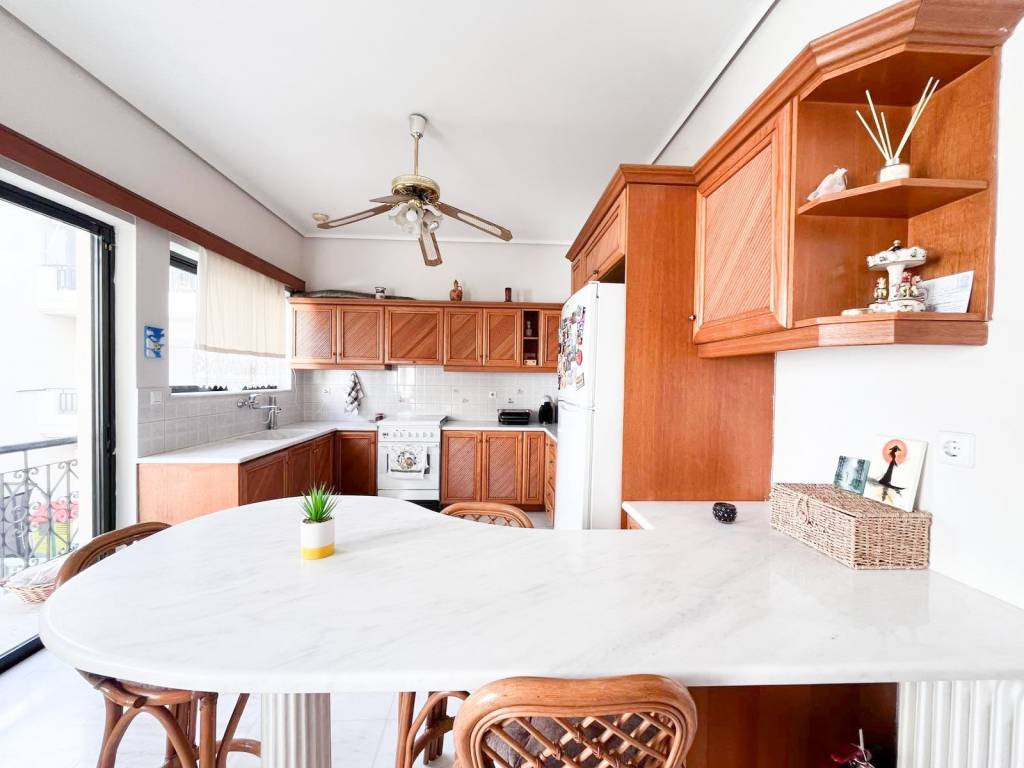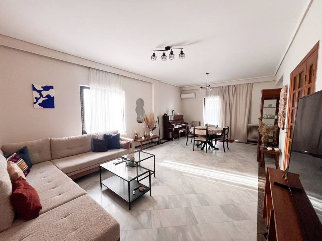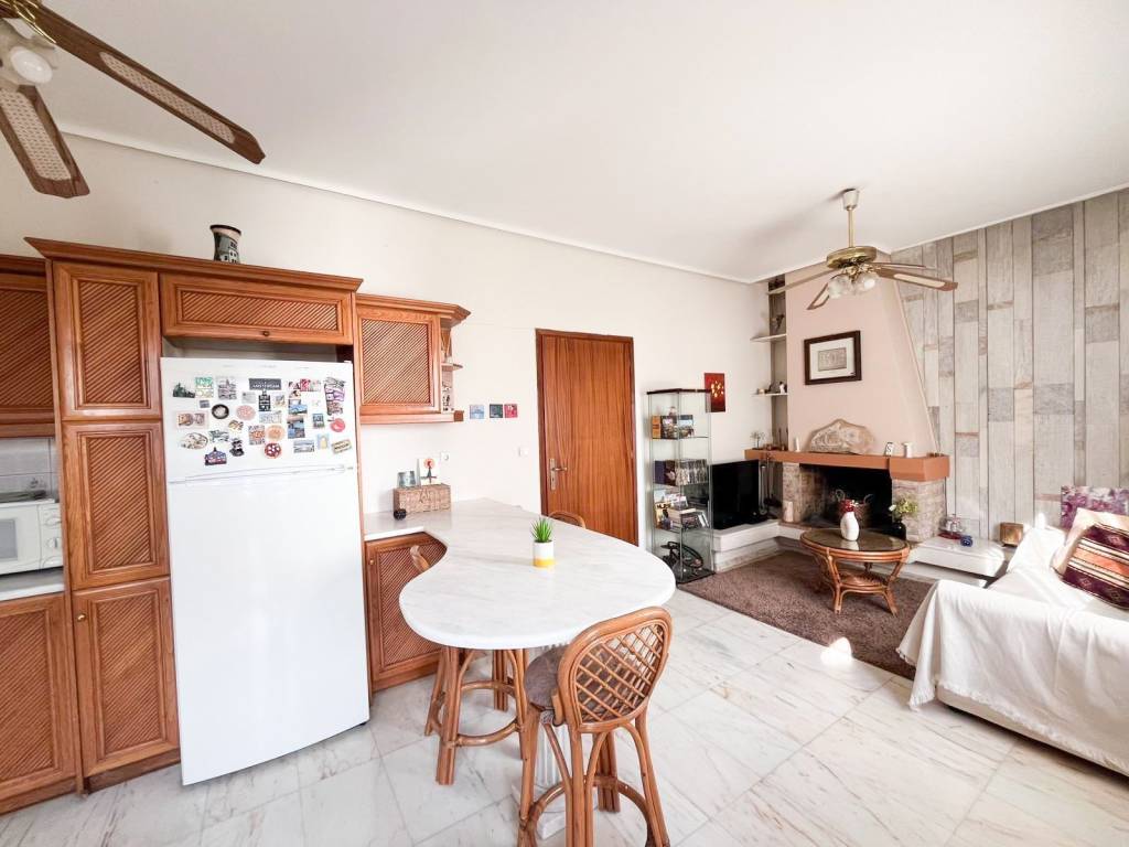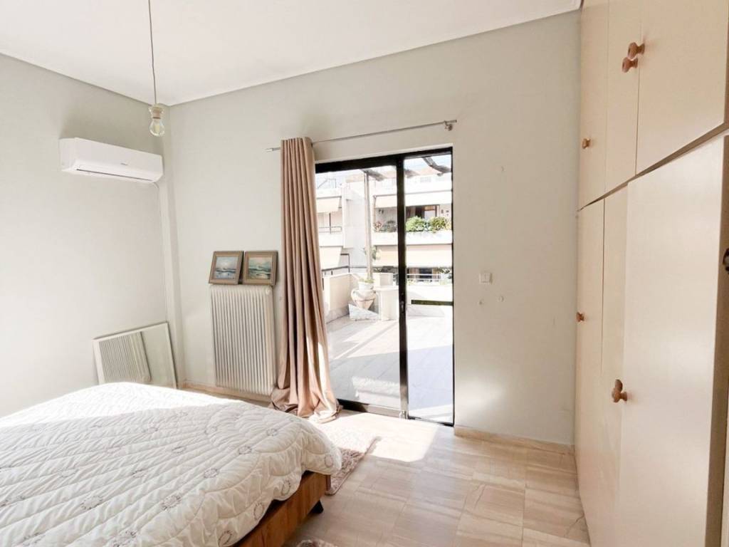 This is a 150sqm maisonette on the 1st floor of a two-family house built in 1990. It is divided into two levels which are configured as follows: On the 1st floor there is a large living room and a wc. We go up to the 2nd floor where there is a kitchen with a living room and a fireplace, 3 bedrooms and a bathroom. The maisonette has very large verandas of 50sqm, autonomous oil heating, solar water heater, marble floors in almost all areas, aluminum frames, internal storage space under the stairs, air conditioning and a covered parking space. It is located in an excellent location, close to schools, a local market and 400m from the Chalandri metro station.