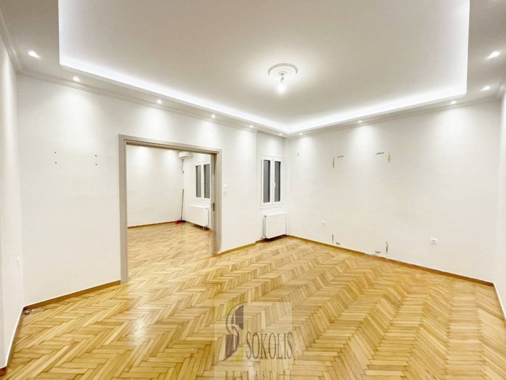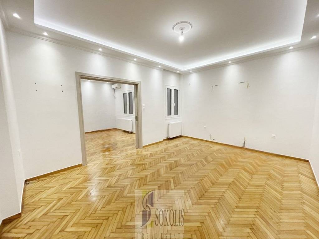 διαμέρισμα Ά ορόφου πολυτελώς ανακαινισμένο πρό τριετίας, περιλαμβάνει άνετους χώρους υποδοχής, ανεξάρτητη κουζίνα, δυο υπνοδωμάτια, ένα μπάνιο και wc. Κατάλληλο και για γραφείο- ιατρείο.