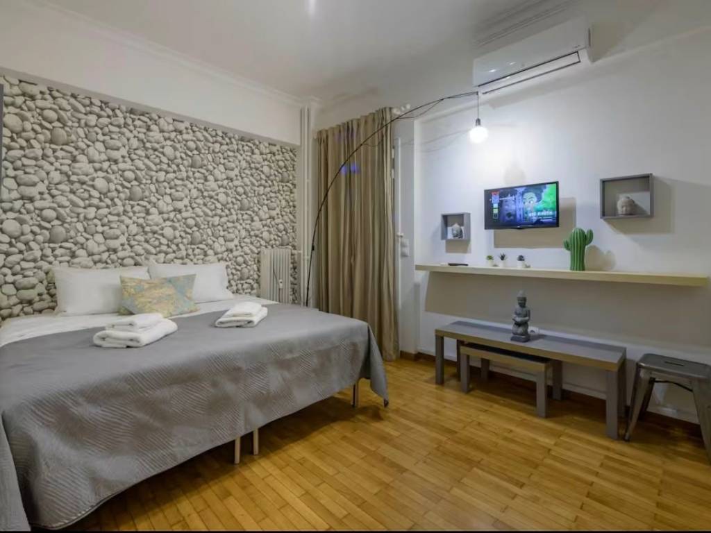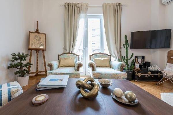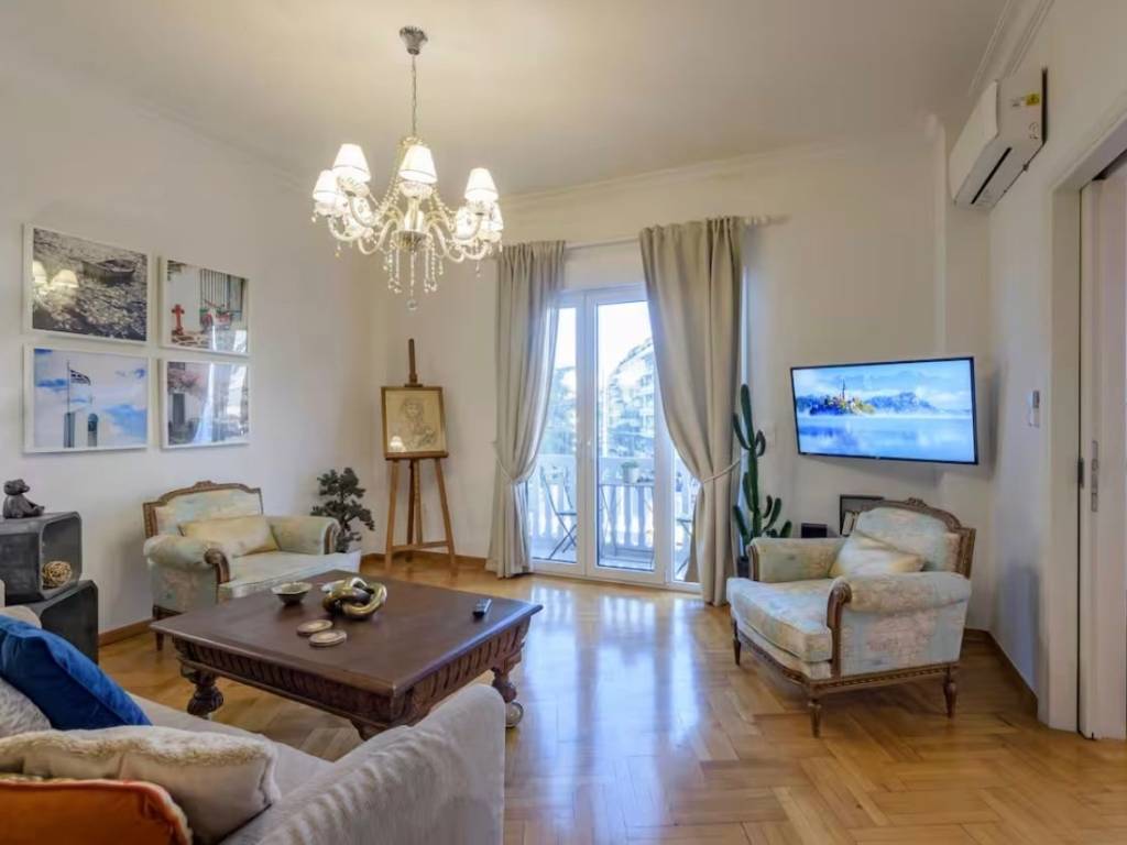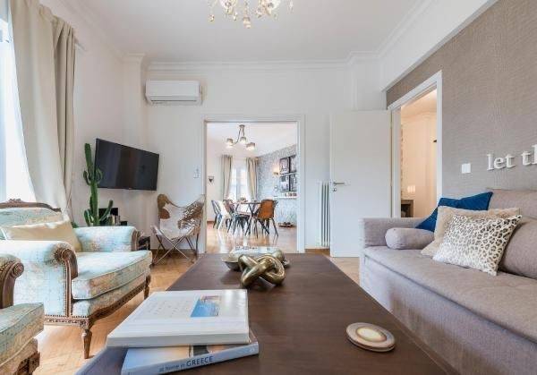 2020 renovated 3 bedroom apartment with view near the Acropolis metro. Fully furnished including electrical appliances, linens and kitchen utensils. A/c in living room, dining room and all 3 bedrooms. Tv in living room and all bedrooms. (Smart tv) Two full bathrooms, one with bathtub and shower the other with shower. Hot water automatic switch. Utility cupboard with washing machine. Decorated with unique art and decor. Sofa bed in living room (can accommodate up to 8 people) Very close to the Acropolis metro and Koukaki and overlooking the temple of Zeus. Well suited for embassy or company employees from overseas as fully furnished. Will require full security check and deposit before renting.