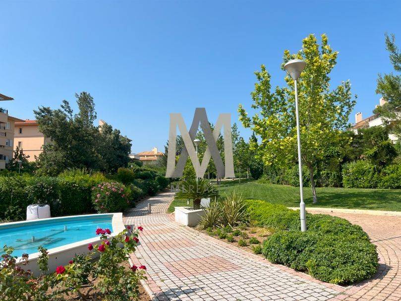 Apartment for sale, in the uniquely beautiful “Edison Hill” residential complex in Pallini. The gound floor apartment is 100 sq.m. and is located on the northwestern side of the complex's "horseshoe" layout. It consists of 2 bedrooms, 2 bathrooms, an open-plan kitchen with access to a 100 sq.m. west-facing garden, and a dual-aspect living room opening onto a 100 sq.m. east-facing garden. The property includes one underground parking space with elevator access, a 10 sq.m. storage room, and access to all communal areas of the complex. The complex features a large indoor swimming pool with an outdoor deck, a health club/gym equipped with fitness machines and exercise programs, extensive green spaces, and 24-hour security. The apartment is heated with autonomous natural gas heating and also features 5 air conditioning units, aluminum window frames, and wooden floors.Price: €450.000. ML Realty, contact phone: +30 6945977236, email: ml@mlrealty.gr