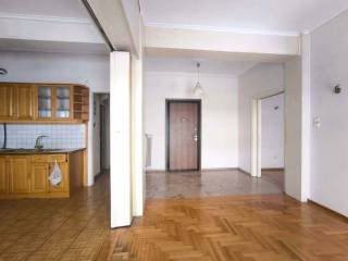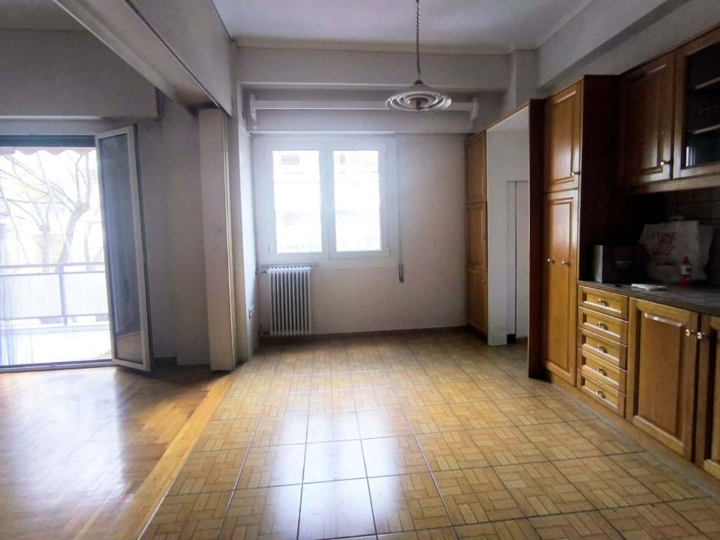 (code 71711) Spacious apartment 110 sq m. 1st floor, bright. Partially RENOVATED in 2010. Functional layout, comfortable spaces. Consists of a large living room, which also allows for an office space, with open plan kitchen, 2 bedrooms, bathroom WC, internal STORAGE. Large front veranda with opening and view of greenery, rear veranda. ✅ Solar water heater, Security door, Aluminum with double glazing and screens, AC. Without central heating. IDEAL for Family ~ Roommate ✅ Also available for PROFESSIONAL use. ✅ Price negotiable 2 Warranties - Three-Year Contract. Pets are not allowed.