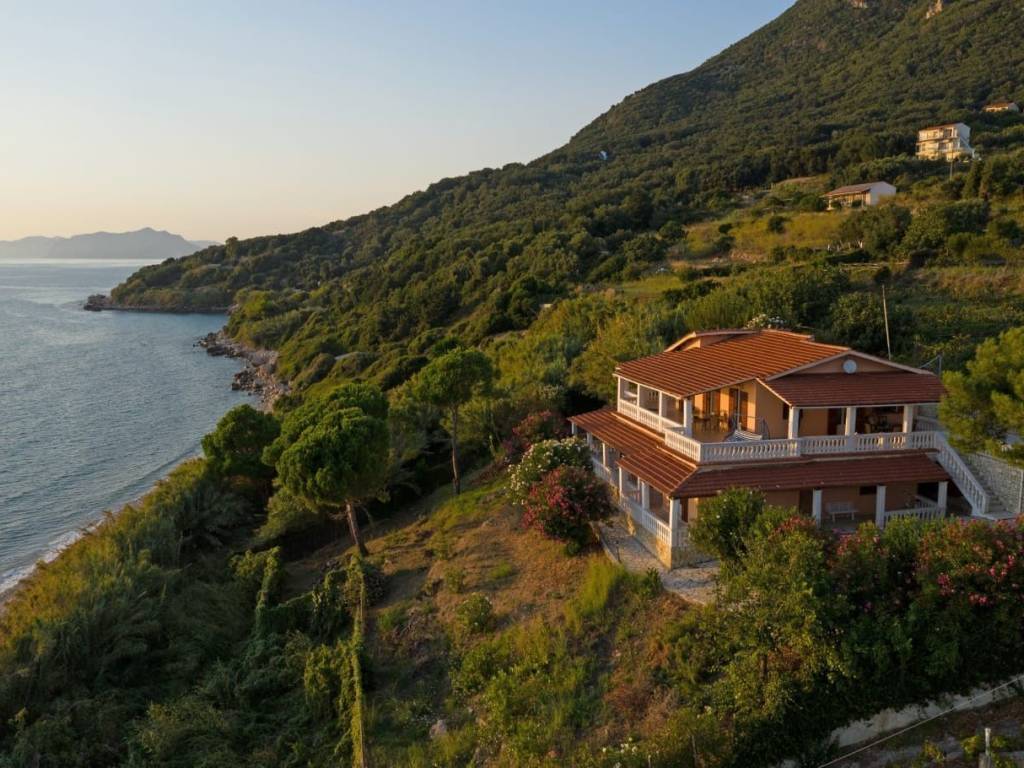 Corfu For sale: a villa enjoying panoramic and unobstructed views of the Ionian Sea, set within a private estate of 4,650 sq.m., overlooking Paramonas Beach on the western coast of Corfu. The property offers a total living area of 279 sq.m., arranged over two levels, and benefits from privacy, a natural setting, and open sea views. The landscaped grounds are surrounded by greenery, while the beach and the sea are located within very close proximity. Key Features: · Villa size: 279 sq.m. · Plot size: 4,650 sq.m. · Bedrooms: 8 · Bathrooms: 4 · Kitchens: 2 · Levels: 2 · Parking spaces: up to 5 · Fully furnished · Renovated in 2006 · Connected to public water and sewage networks Description: The villa blends traditional Corfiot architectural elements with bright and comfortable interior spaces. Spacious terraces and balconies frame uninterrupted views of the sea and the surrounding natural landscape. With eight bedrooms and four bathrooms, the property comfortably accommodates private living or guest hosting. The presence of two fully equipped kitchens allows for flexible use of the residence. The estate also includes a wine cellar and a small vineyard, adding character and authenticity, while parking is available for up to five vehicles. Thanks to its northwest orientation, the villa enjoys remarkable sunset views over the Ionian Sea. Location: Paramonas is a quiet seaside area on Corfu’s southwest coast. The beach and local tavernas are within walking distance, while several well-known beaches and key amenities of the island are easily accessible by car. Indicative Distances: · Prasoudi Beach: 3.5 km · Agios Gordios Beach: 8 km · Moraitika: 10.5 km · Issos Beach: 14.5 km · Benitses: 17 km · Corfu International Airport: 21.5 km · Corfu Town (Historic Center): 24 km Summary: A well-maintained property offering: · a large private estate · panoramic and unobstructed sea views · privacy and natural surroundings · close proximity to the beach · potential for private use as well as investment An excellent opportunity for those seeking a high-quality residence or investment property on the western side of Corfu.