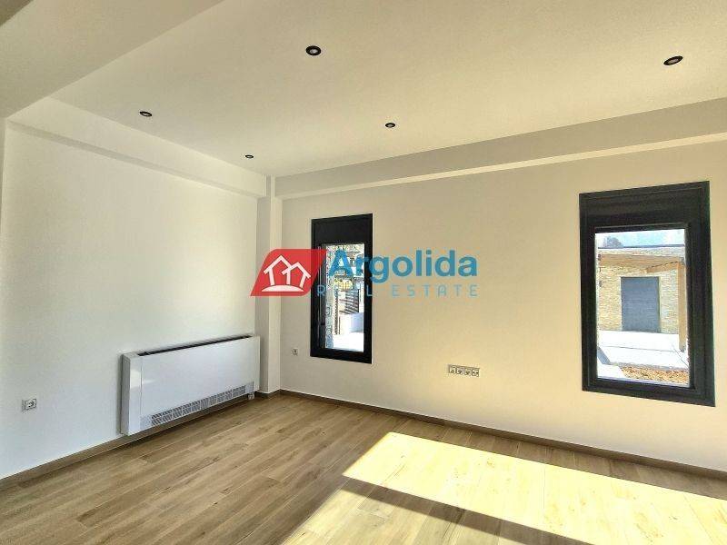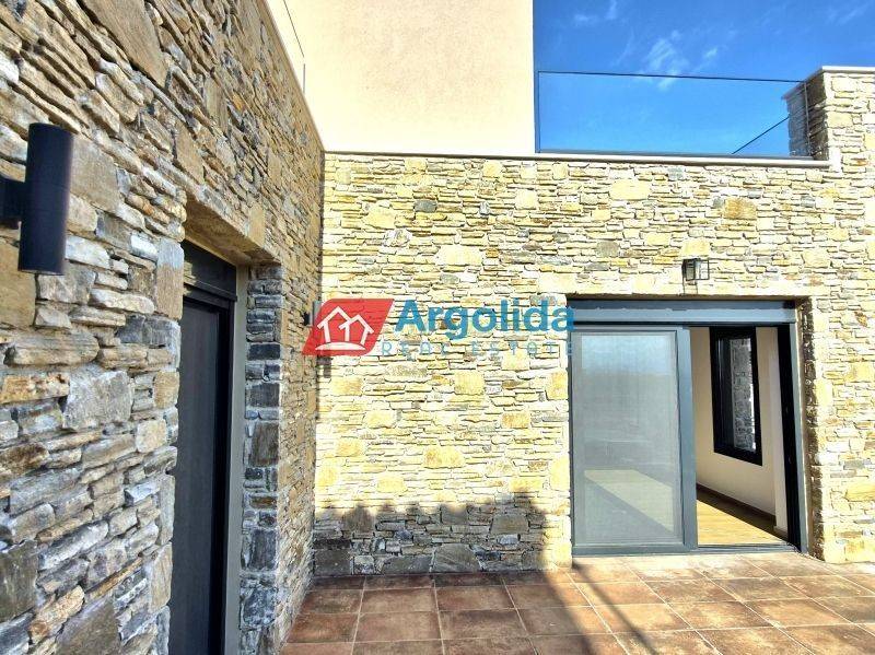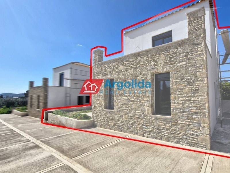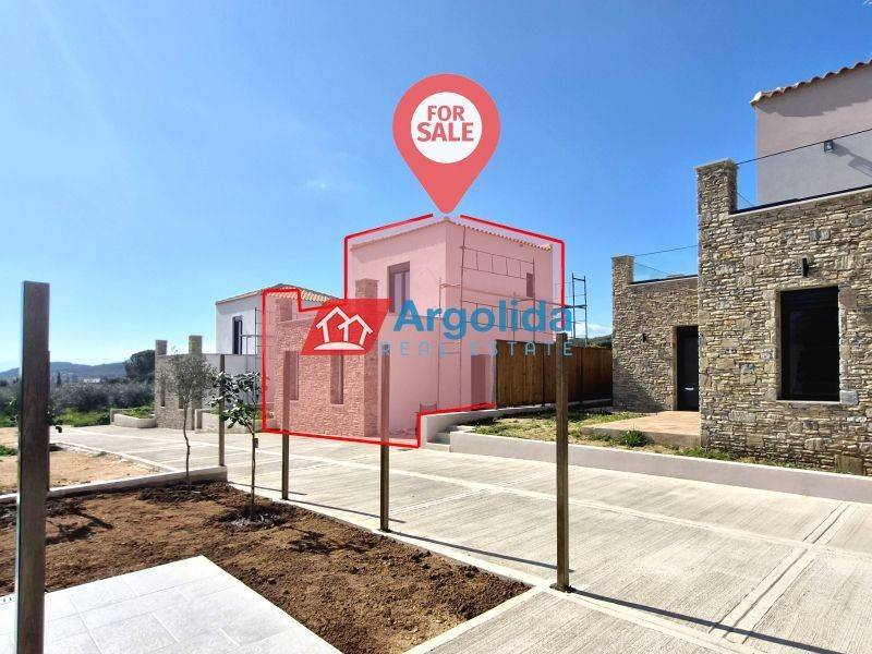 In a beautiful and rapidly developing residential area near the historic city of Nafplio, a newly built 95 sq.m. detached house is available for sale, set on a private 140 sq.m. plot and ideal for permanent living, holiday use, or investment. This modern two-level home, classified as Energy Class A, combines contemporary design with traditional stone elements, external insulation, and high–quality construction. The ground floor offers an open-plan kitchen, living and dining area, one bedroom and a bathroom, while the upper level includes a master bedroom with an en-suite bathroom and access to two spacious terraces with open views of the natural landscape and partial distant sea views. The house is equipped with a heat pump, fan coil units, energy-efficient aluminum frames, a solar water heater, a reinforced security door, and an outdoor parking space within the plot. The 12 sq.m. pool shown in the photos is not included in the price but can be constructed at an additional cost. Located in a quiet neighborhood of newly built homes, the property is just 7 km from Nafplio and approximately 5 km from the beaches of Tolo and Plaka Drepanou, offering easy access to the sea and the town center. House 2 is immediately available, and the photos show the finished result of already completed homes with exactly the same specifications. The estimated delivery time for Houses 6, 7, and 8 is approximately 16 months.