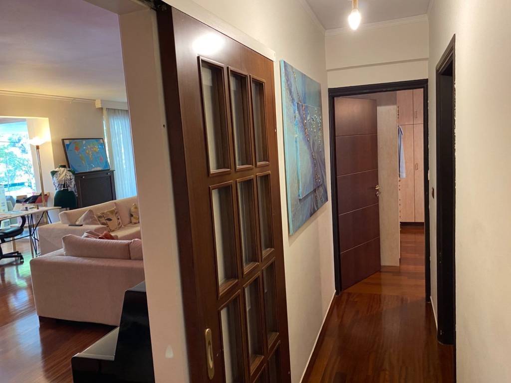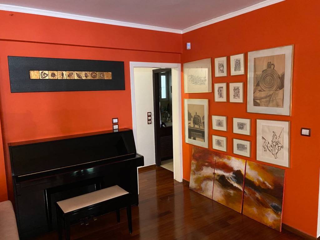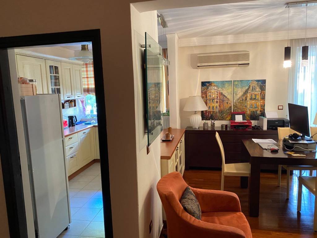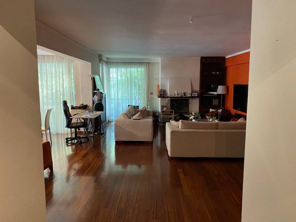 A fully furnished and fully renovated 120 sq.m. apartment is available for rent on the 2nd floor, designed and supervised by an architect, located in a quiet and green area in the central–off-center district of Chalandri. The apartment features a spacious open-plan living and dining area with high-quality wooden floors, a fireplace and refined aesthetics, a separate fully equipped kitchen, a dedicated home office space ideal for remote work, and a large covered balcony surrounded by greenery, offering privacy and a relaxing atmosphere. The property is bright, with excellent internal flow, carefully selected furnishings and quality materials throughout, equipped with air conditioning and includes a private parking space. An ideal choice for an individual or a couple seeking a high-quality, comfortable residence with strong architectural character, available for long-term lease.