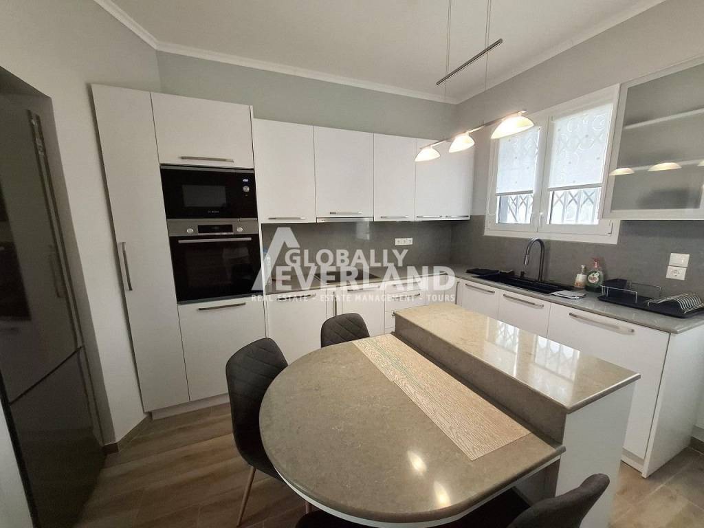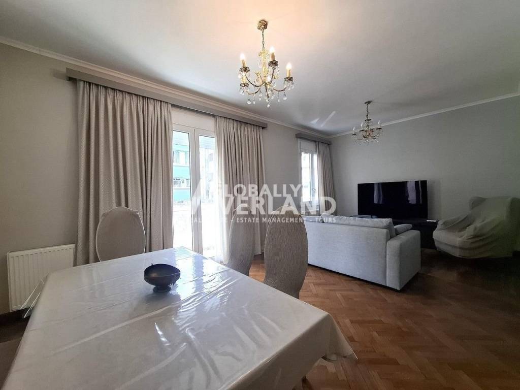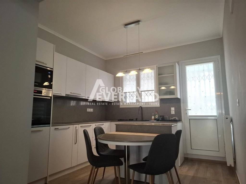 Very beautiful RENOVATED/ RECONSTRUCTED & LUXURIOUSLY FURNISHED (year 2025) Entire Floor Apt 100 sq.m., 2nd floor, penthouse, exceptionally BRIGHT, on a small building, at residential area close to all transits and Market, appropriate for residence or for commercial use as well, with view on a pedestrian street, big reception space and wardrobe at the entrance with many storage spaces, big space for living room and dining room with electric fire place, big kitchen with marble and electric appliances Bosch, 2 big b/r, bathroom and WC for guests, double-sided, front facing, bright, heating heat pump autonomy, solar panel, boiler, air condition, with energy class Z, with floor type wooden floor, with energy electric aluminium joinery, triple glass pane, double glazing, awnings, pest net, door tv, security door, alarm, satellite dish, cable TV, night discounted electricity, veranda 12 sq.m., big storage room Notice: The actual address of the property will be given upon the meeting for the property 's viewing. The person interested will have to provide upon the viewing their Passport number and/or ID card plus VAT number if there is any, according to the greek law Ν.4072/11-4-2012 ΦΕΚ 86Α Agent in Charge: Nadina Hakiami +306946475144, +306987955871 price 1.200€, code 1716 GLOBALLY EVERLAND +302109814569, +302109834795