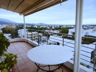 Πρόκειται για πολύ φωτεινό κουκλίστικο πολυτελές ρετιρέ, με ποιοτικά υλικά, επίπλωση και τέλεια διαρρύθμιση, όπου συνδυαστικά με την πανοραμική του θέα το καθιστούν μοναδικό στην περιοχή. Έχει κατοικηθεί από τον ιδιοκτήτη περιστασιακά λόγω μόνιμης διαμονής του στο εξωτερικό και βρίσκεται σε άριστη κατάσταση. Διαθέτει, εντυπωσιακό μεγάλο σαλόνι με μεγάλα ανοίγματα σίτες και εντυπωσιακή βεράντα που βλέπει πανοραμικά μέχρι την θάλασσα. Ανοικτή πλήρως εξοπλισμένη κουζίνα με όλες τις εντοιχισμένες ηλεκτρικές συσκευές ψυγείο, φούρνος, εστίες, πλυντήριο πιάτων, μικροσυσκευές. Στο μάστερ υπνοδωμάτιο μεγάλη εντοιχισμένη ντουλάπα και πολύ όμορφο μπάνιο με ντουζιέρα. Η θέρμανση - ψύξη του διαμερίσματος γίνεται με καινούργιο inverter a/c με σχεδόν μηδαμινές απώλειες λόγω της ποιοτικής σειράς αλουμινίων βαρέως τύπου. Το ασανσέρ σταματά στον 4ο όροφο. Βρίσκεται σε μικρό ήσυχο κτίριο, σε ήσυχη γειτονιά, κοντά σε στάση λεωφορείου.