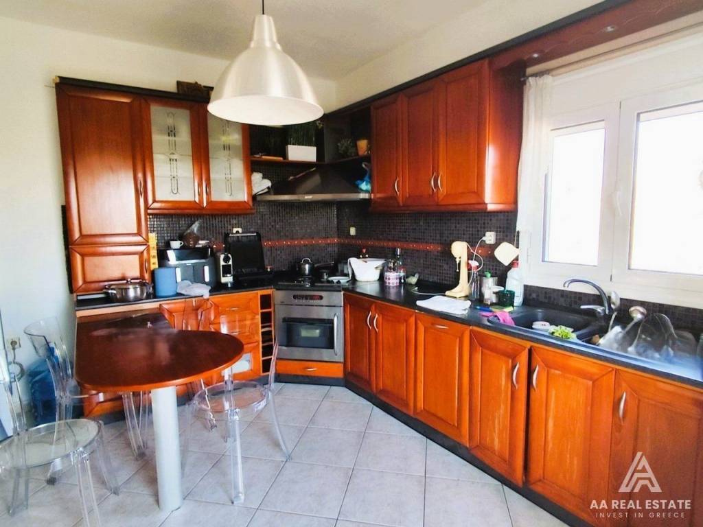NEA MOUDANIA - FOR SALE beautiful house, of quality construction, area 310 sq m, on a plot of 1,500 sq m, with fruit trees and olive trees, and a built fence. This is a bright house with unlimited views, excellent construction of the year 2000. It consists of three levels, has 3 bedrooms, large living room with fireplace, kitchen, 3 bathrooms. BASEMENT - storage space 100 sq m GROUND FLOOR - three spacious rooms, comfortable bathroom, storage room and large corner balcony, 1st FLOOR - a very beautiful bright large living room with fireplace and with large openings that allow light to enter and enjoy the view also a beautiful dining room, storage room, large bathroom and a wonderful terrace with a view for moments of relaxation. ATTIC - large bedroom and bathroom, storage under the separate wooden ceiling, It has heating with a pump and a gas and electricity tank, security door, double-glazed synthetic frames, tiled floors, alarm, awnings, tiled roof, marble staircase, 3 air conditioners. It is located just 3 kilometers from the beach, 5 minutes from the center of Nea Moudania, 45 minutes from Thessaloniki airport. It is an excellent choice for a residence in a privileged green, quiet environment and at the same time with easy access, very close to all areas near N. Moudania, the airport and Halkidiki. open parking spaces 3, distance from the beach 3000, terace, type of glass duble, land surface 1500, energy class Ε, country house, indoor lader, view, garden, air conditioning, frames synthetic, security door, orientation eastmeridian, access asphalt, alarm, awning, flooring type tile, bright