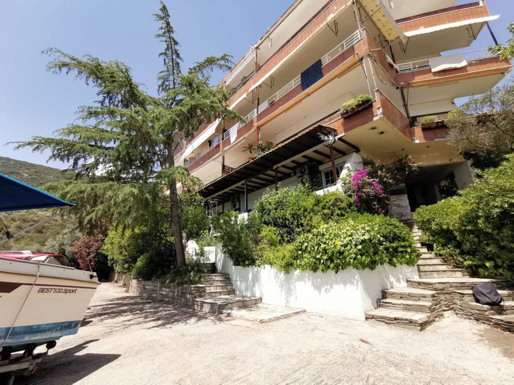 Apartment of 35 square meters, renovated, bright, airy, bright, furnished, rented by the month in a traditional stone complex with sea and mountain views, 50 meters from the sea with a large terrace, awnings, A/C, parking space.