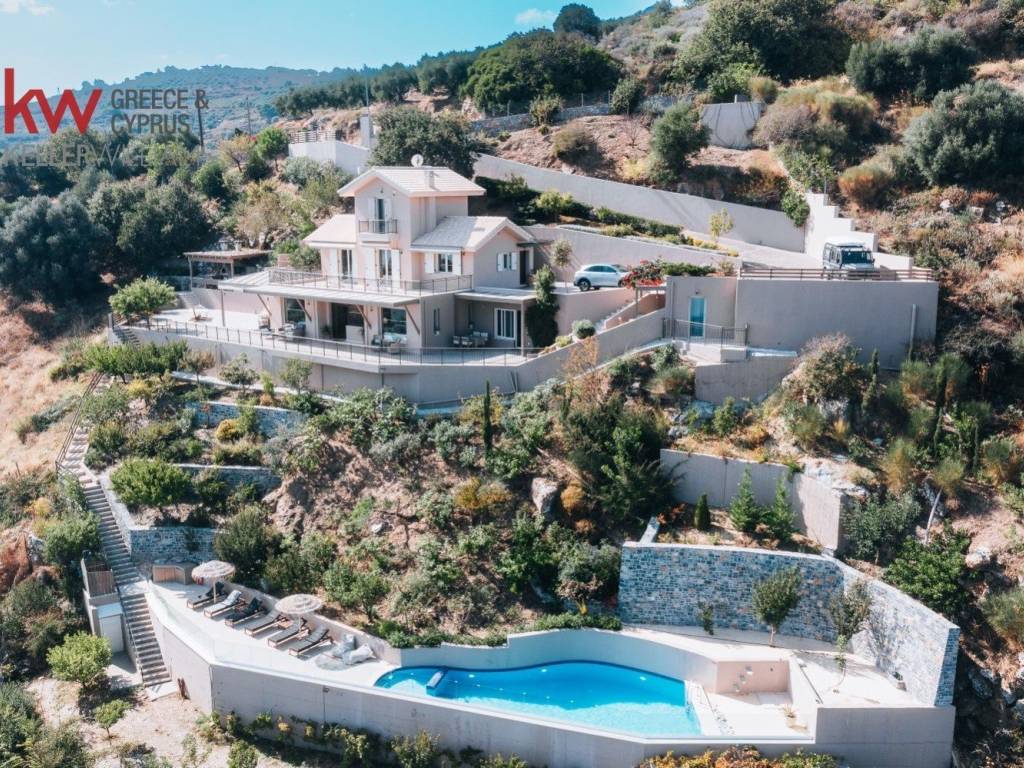 Villa Serenity – Where Horizon Meets Tranquility Rodia, Crete – Greece 250sq.m. Villa | 2600 sq.m. plot Longing to experience the lightness of being? This villa is where your search ends. In a privileged setting along Crete’s northern coastline, Villa Serenity emerges as a creation of contemporary architecture and timeless elegance. Sitting on a prominently positioned 2910sq.m. plot on the slopes of Rodia, with uninterrupted views over the Bay of Heraklion, the island of Dia, and the majestic mountains beyond, the villa uniquely unites the island’s natural beauty with the refined luxury of an elevated lifestyle. From the very first moment, Villa Serenity conveys the sense of a residence that transcends the concept of a mere home; it is both a sanctuary of tranquility and a high-value investment opportunity. Architecture & Design Spread across three levels, Villa Serenity offers three elegantly appointed bedrooms and an independent guest suite, accommodating up to ten guests in complete privacy. Full-height glass walls flood the interiors with natural light, framing sweeping views of the Aegean from every angle. Ground Level: An open-plan space featuring a Tsigenis Woodcraft designer kitchen, dining area, and elegant living room with fireplace. Floor-to-ceiling windows create the sensation of floating above the Aegean. Independent Guest Suite: On the lower level, a private retreat with kitchen, sitting room, en-suite bedroom, and separate entrance. 1st Level: Master suite with private balcony and uninterrupted views, along with a secondary en-suite bedroom. Elevated Attic: A bright double bedroom offering ultimate privacy and panoramic sea views with a private balcony. Staff Quarters: A self-contained space with its own kitchen and bathroom suitable to host one person. Premium finishes include bespoke carpentry and natural wood, while high-end appliances and advanced climate control systems ensure the utmost comfort. Lifestyle Amenities Outdoor living is at the heart of Villa Serenity. A 48 sq.m. pool dissolves into the sea views, surrounded by landscaped Mediterranean gardens. An outdoor pavilion with professional-grade BBQ sets the stage for unforgettable al fresco dining at sunset. Multiple terraces and shaded lounges invite relaxation throughout the day — whether in the glow of the morning sun or the calm of the evening breeze. Secure private parking and full smart-home connectivity add peace of mind and effortless modern living, completing a lifestyle without compromise. Distances 18 km from the city of Heraklion 21 km from Heraklion International Airport 4 km from Paleokastro beach and marina 4 km from Cheldoni beach 20 km from the port of Heraklion 18 km from the nearest hospital (University General Hospital of Heraklion – P.A.G.N.I.) 10 km from the local market of Gazi The Advantage of Rodia Known as the “Balcony of Heraklion,” Rodia offers a rare balance of serenity, privacy, and accessibility. Just 19 km from Heraklion International Airport and 4 km from the beach and marina of Pantanassa, the location combines panoramic views of mountains, sea, and city with proximity to cosmopolitan tavernas and the rich cultural heritage of Crete. Investment Potential More than a residence, Villa Serenity represents a legacy asset in one of Crete’s most sought-after locations. Whether as a private retreat or a high-end investment property with potential for seasonal or short-term rental, the villa fully aligns with the growing demand in Crete’s luxury tourism market. The villa holds an EOT license and has been consistently rented short-term since 2017 over the summer. Villa Serenity — not just a home, but a rare opportunity to own in one of the Mediterranean’s most iconic settings. Price: 1.100.000 Keller Williams Cretan Properties 6973381642 Papadakis Manolis epapadakis@kwgreece.gr https://www.kwcp.gr/ ℹ️ According to Greek law (N. 4072/11-4-2012, Government Gazette 86A’), ID card and Tax Identification Number (AFM) must be presented prior to property viewing.